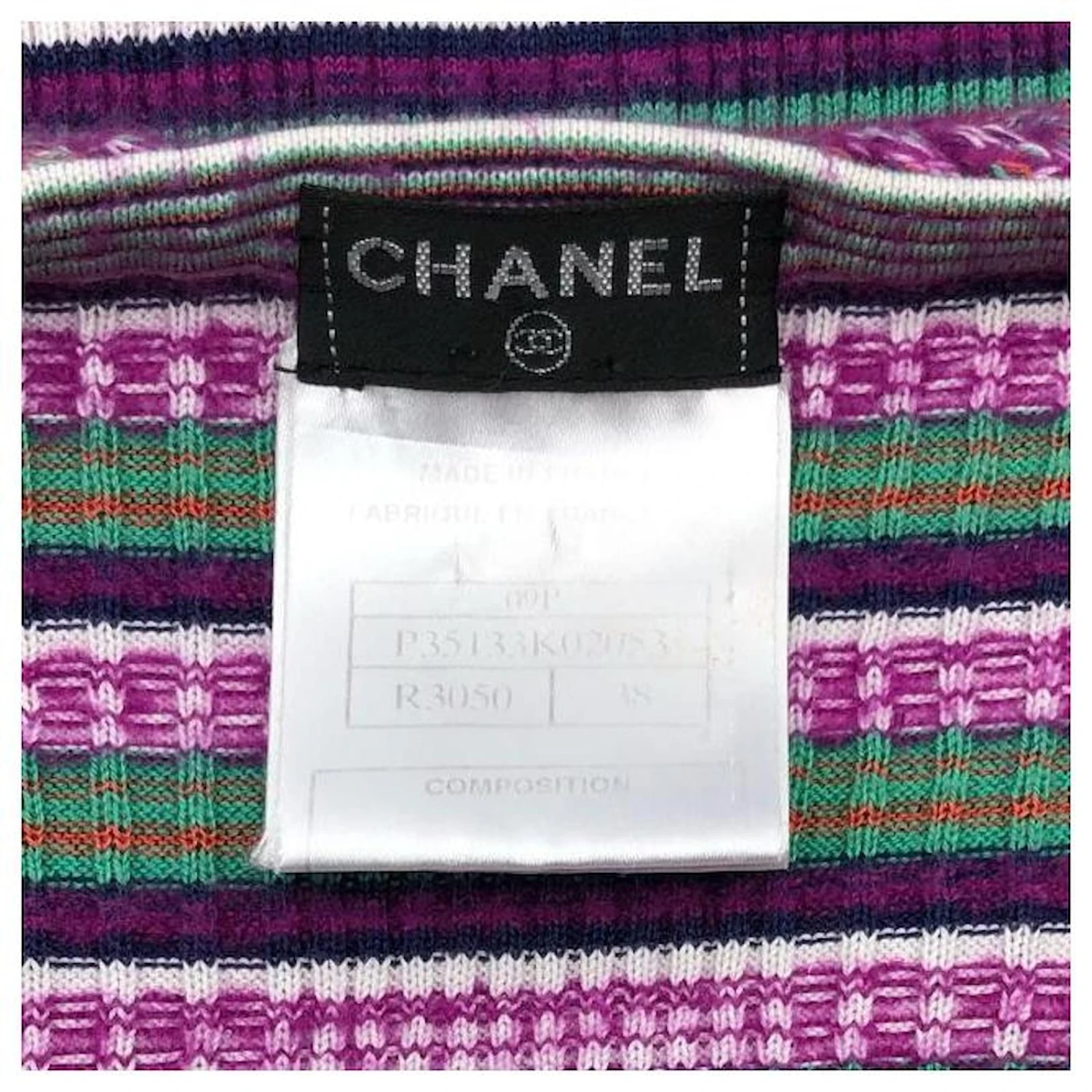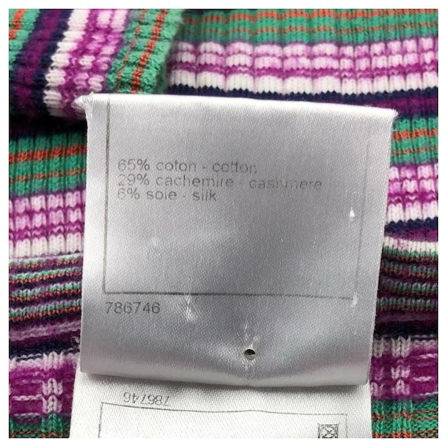 2009 saison.Magnifique maille stretch en coton rose et vert, cachemire et ampli; silk. Avec deux poches avant aux hanches ornées de bordure tissée et de boutons Chanel.Parfait pour toutes les occasions et toutes les saisons !Longueur 84cm.proche de l’état neuf (9.75/10).& nbsp; A été portée. Mais pas de tirage, pas de trou, pas de marques sous les bras. Une aubaine vintage !