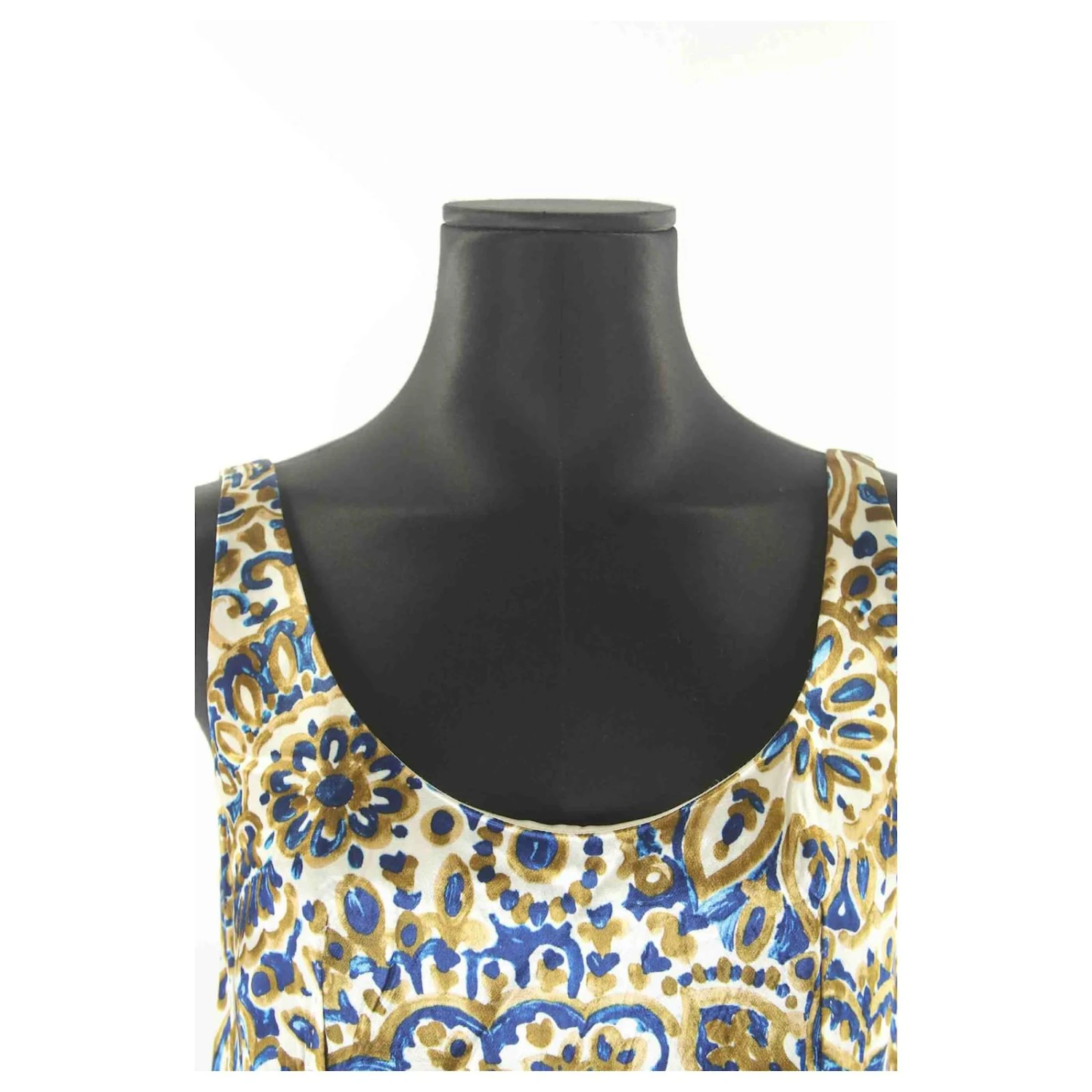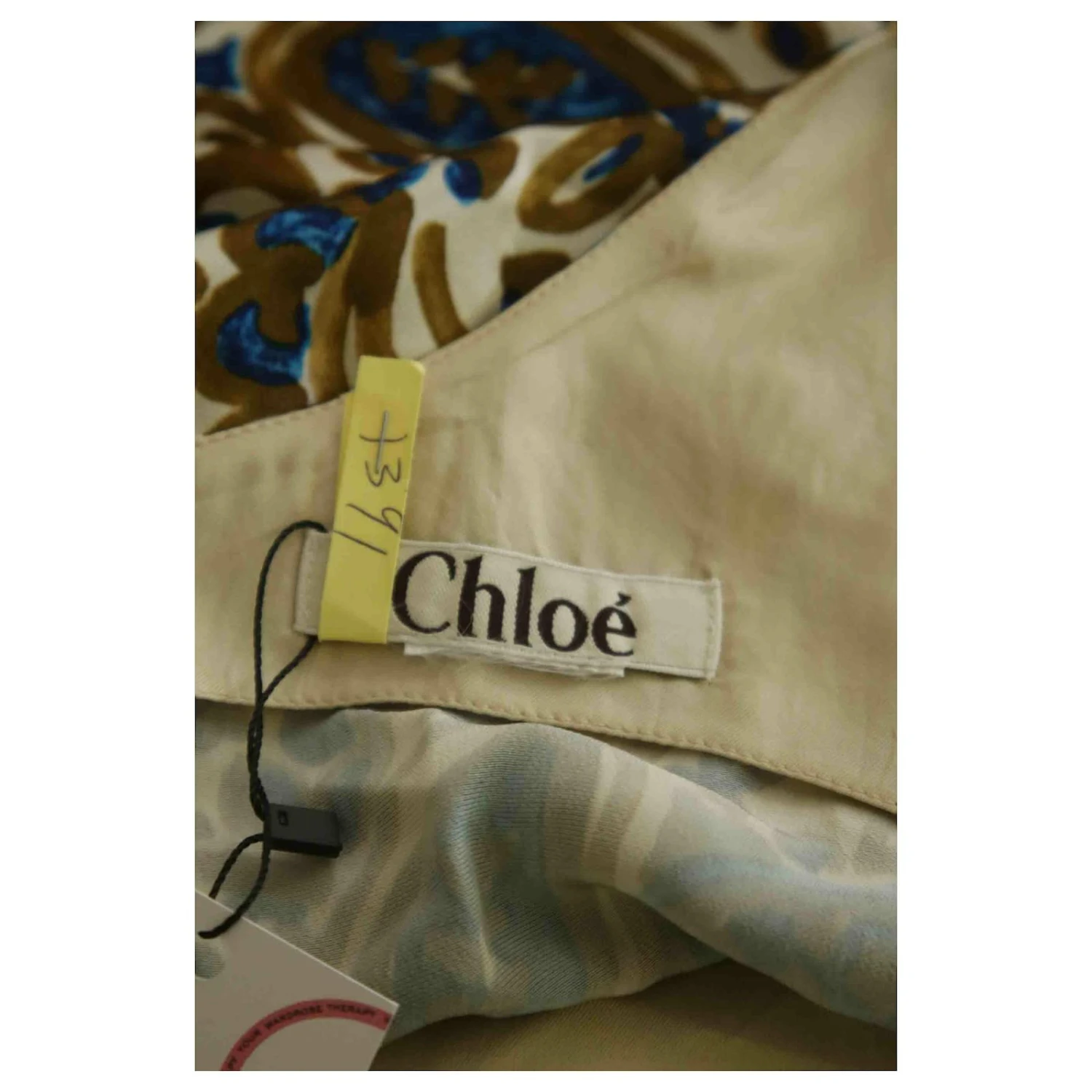Robe – Chloé – Longueur : 95cm – Aisselles : 41cm – Largeur taille : 39.5cm – Fermeture éclair – Etiquette de prix manquante – Bleu – Taille L – Soie – Très Bon État – Référence 373055