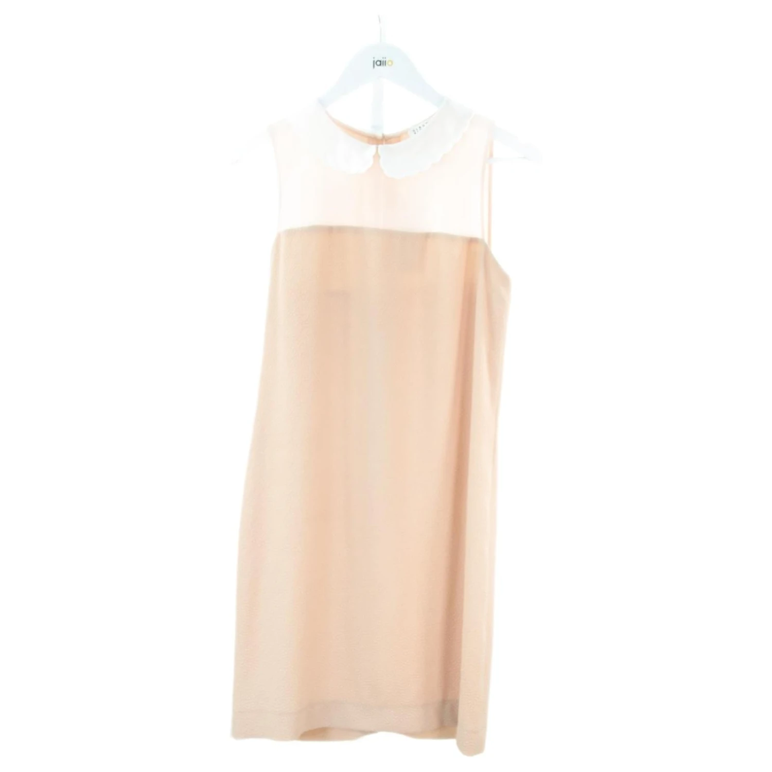 Robe – Sans manches – Aisselles 45cm – Longueur 84cm – Traces d’usure sur le col – Claudie Pierlot – Rose – Taille 38 – 100% Polyester – Bon État – Référence 470002