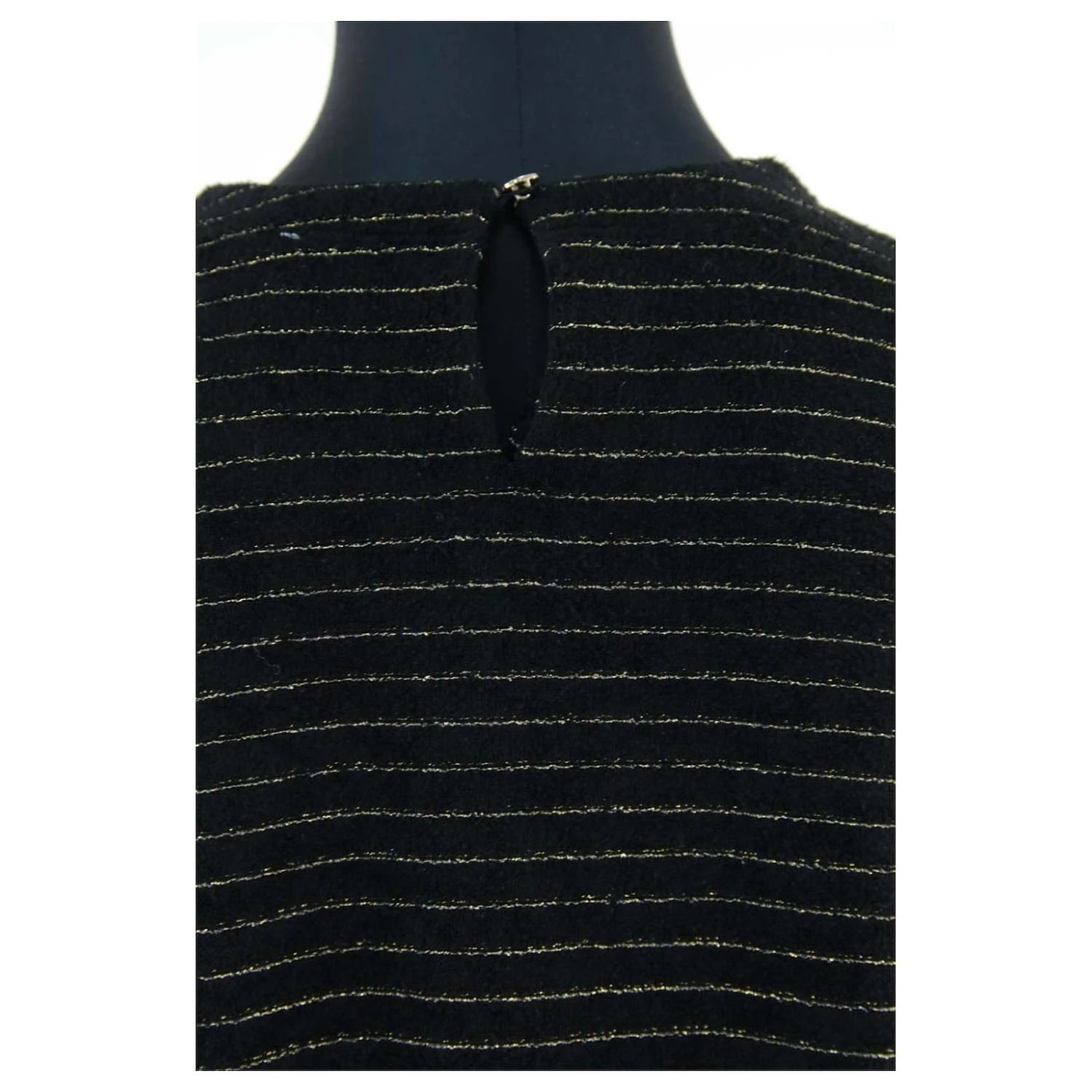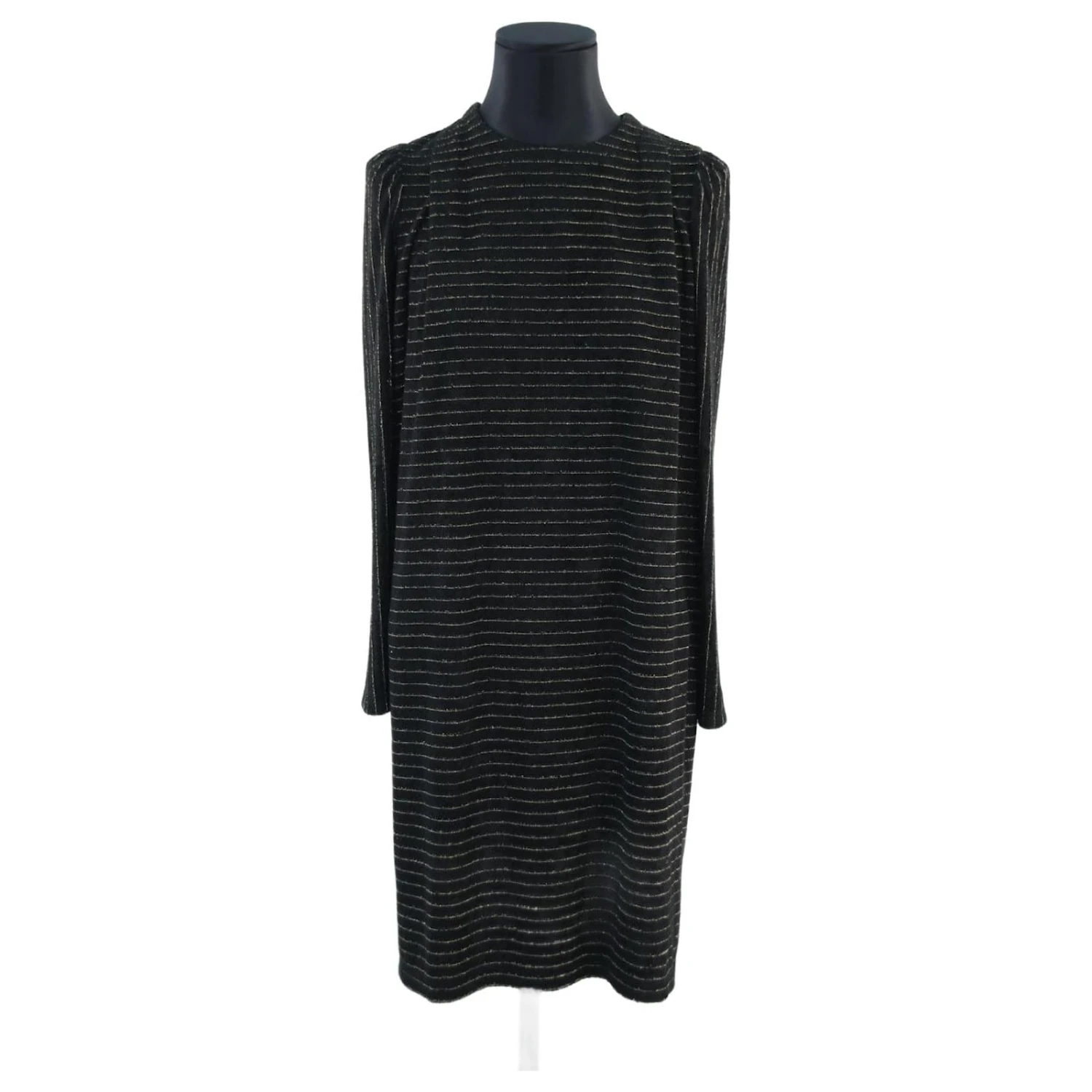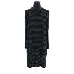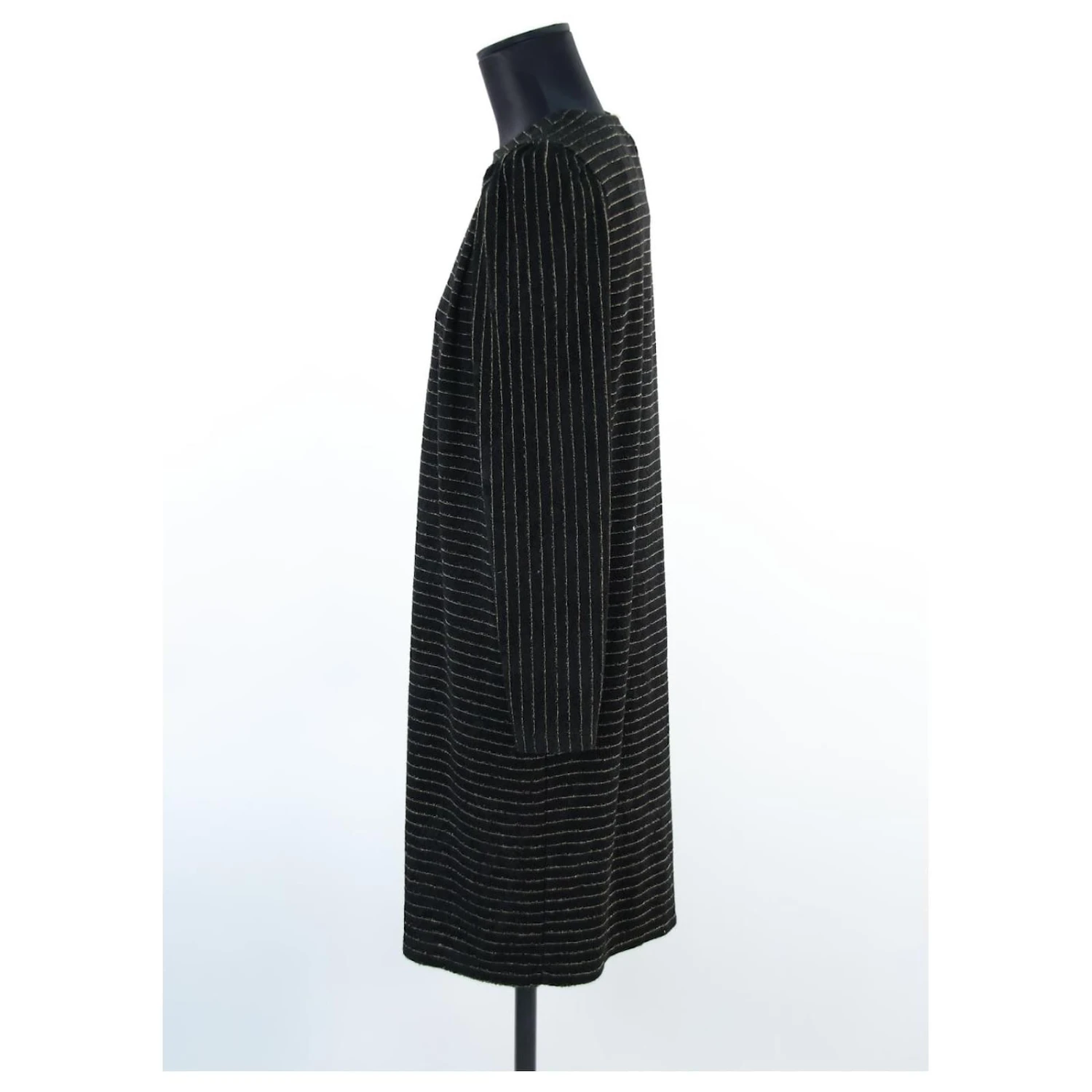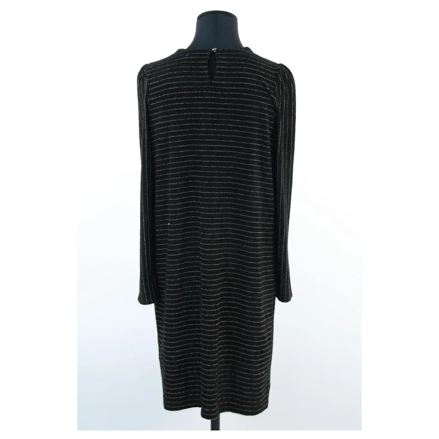 Robe mi-longue – Manches longues – Épaules 38cm – Aisselles 55cm – Longueur 92cm – Des Petits Hauts – Doré – Taille 0 – 78% Viscose 20% Polyester 2% Fibre Métallique – Très Bon État – Référence 527017