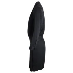 Robe mi-Longue – Manches longues – Épaules 39cm – Aisselles 48cm – Longueur 94cm – Diane Von Furstenberg – Noir – Taille 8 – 70% Triacétate 30% Polyester – Très Bon État – Référence 515000