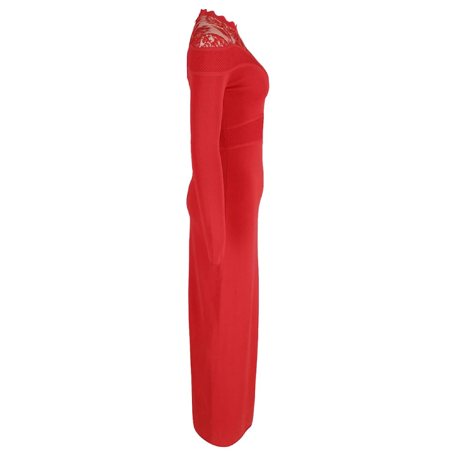 Robe Elie Saab à Manches Longues et Dentelle en Viscose de Bambou Rouge