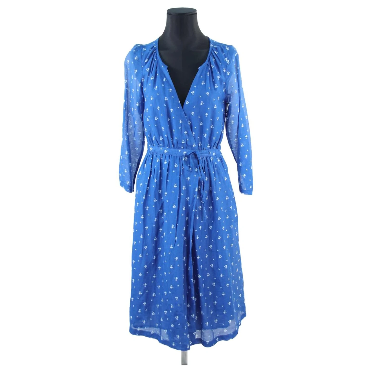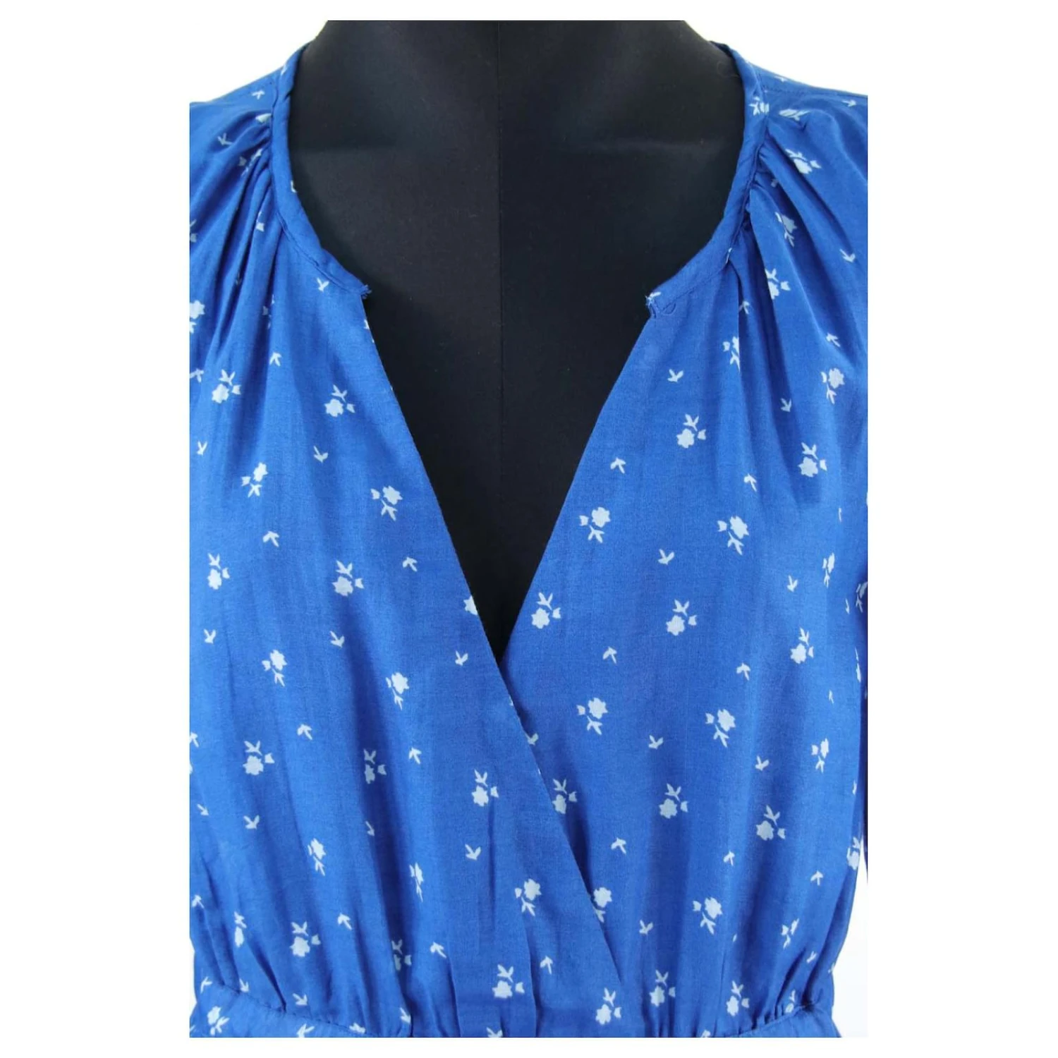 Robe fleurie mi-longue – Manches longues – Épaules 36cm – Aisselles 44cm – Longueur 102cm – Leon & Harper – Bleu – Taille XS – 80% Coton 20% Soie – Très Bon État – Référence 524103