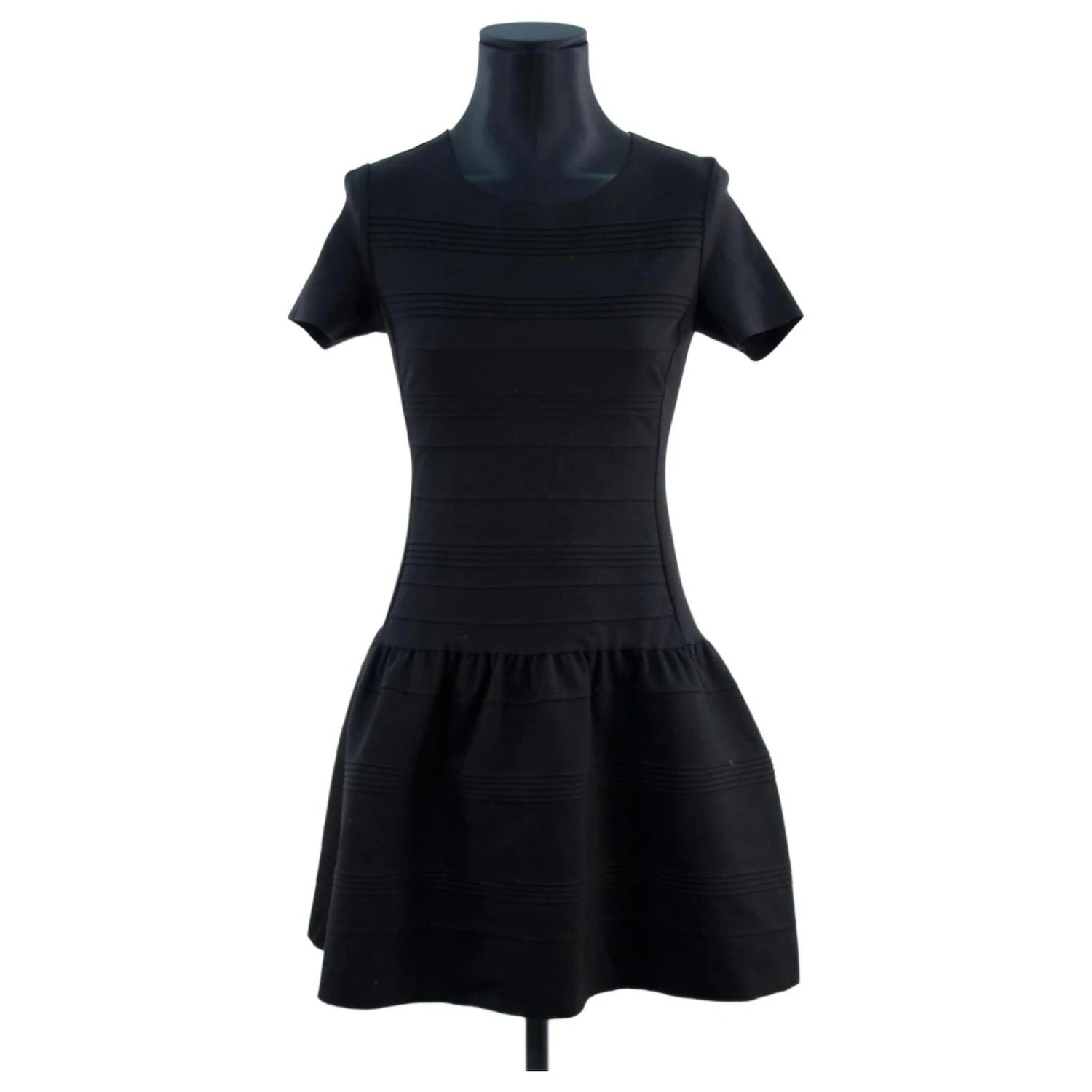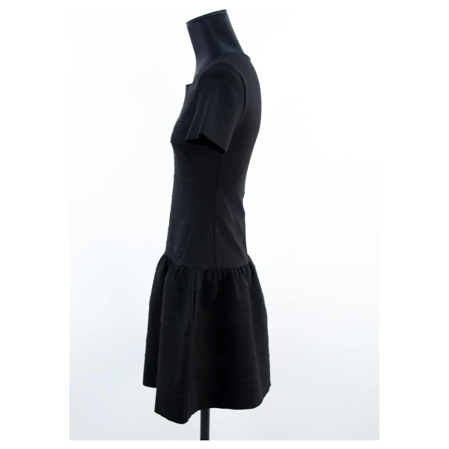 Robe courte – Manches courtes – Ăpaules 34cm – Aisselles 35cm – Longueur 85cm – Maje – Noir – Taille 1 – 60% Viscose 35% Polyamide 5% Ălasthanne – TrĂšs Bon Ătat – RĂ©fĂ©rence 330025