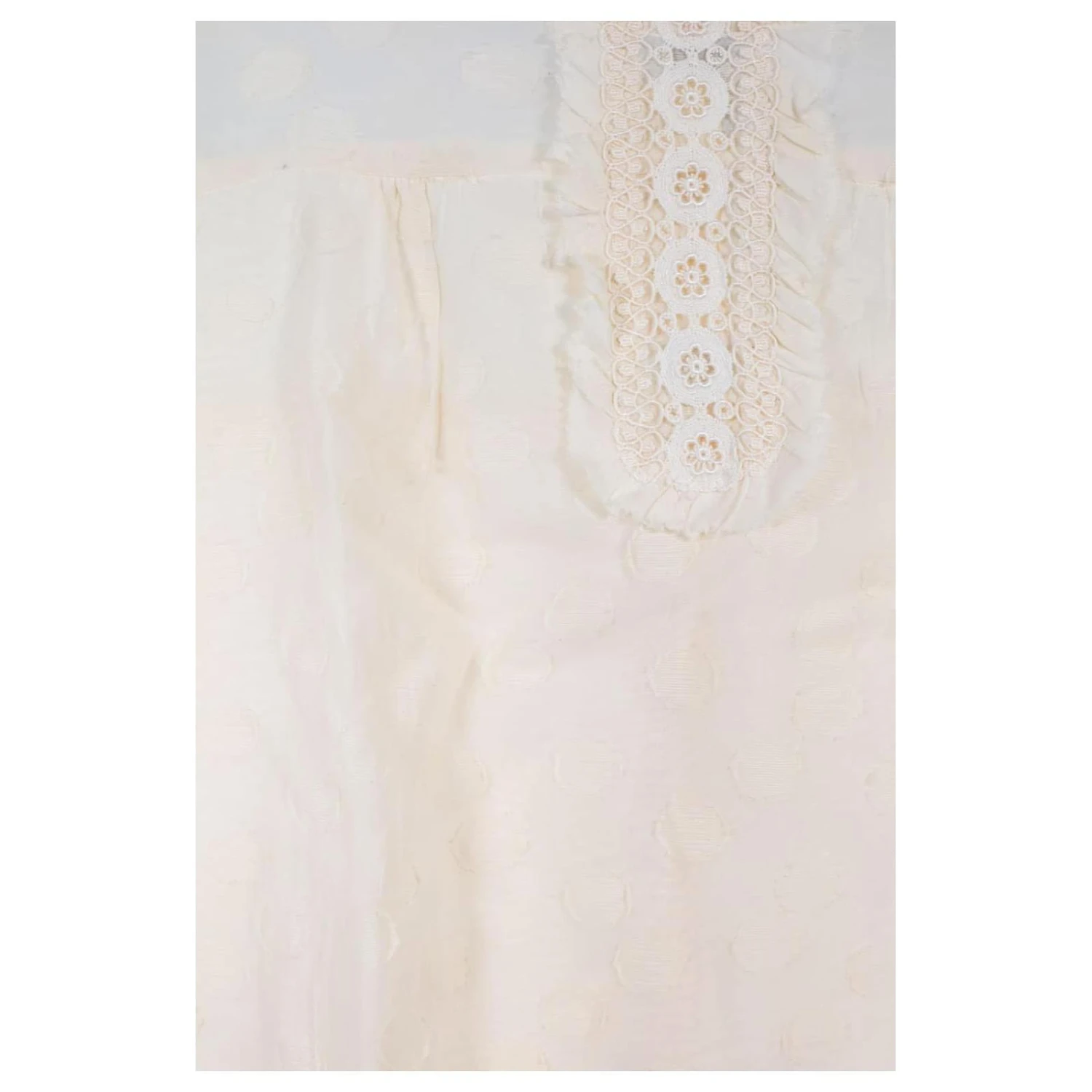 Robe Courte Manches 3/4 – À Pois Ton Sur Ton Longueur 82Cm – Maje – Blanc – Taille 3 – 100% Coton – Bon État – Référence 1118