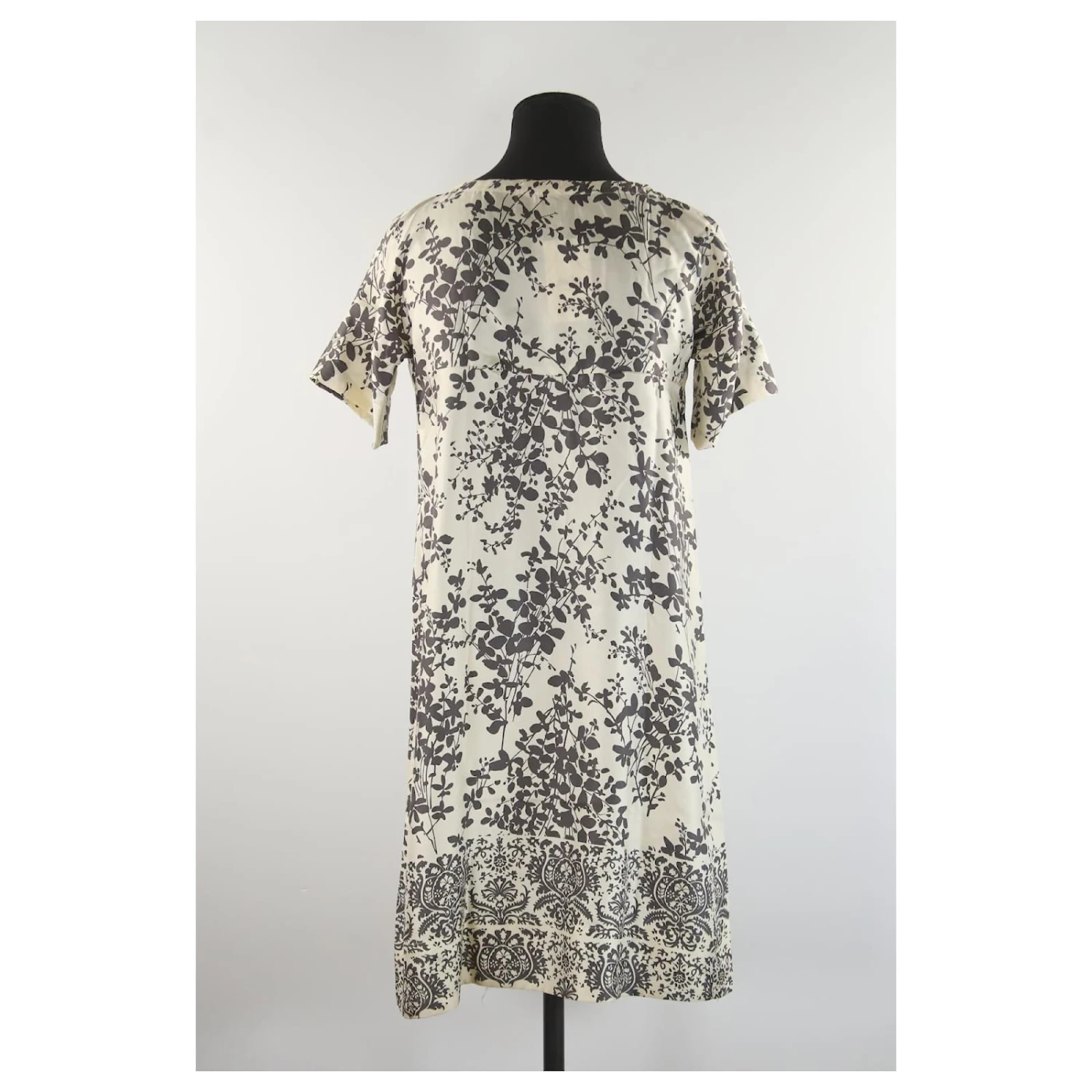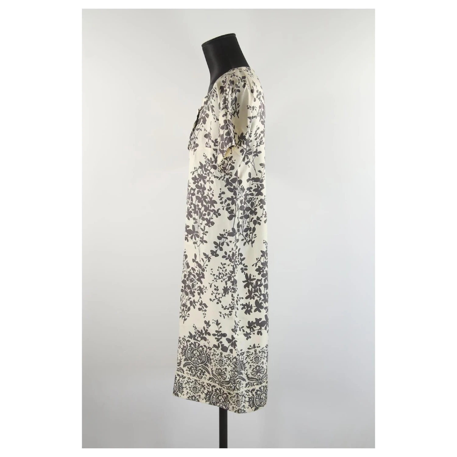 Robe – Maje – Longueur : 94cm – Épaules : 36cm – Aisselles : 15cm – Blanc – Taille XS – 100% Soie – Très Bon État – Référence 992015