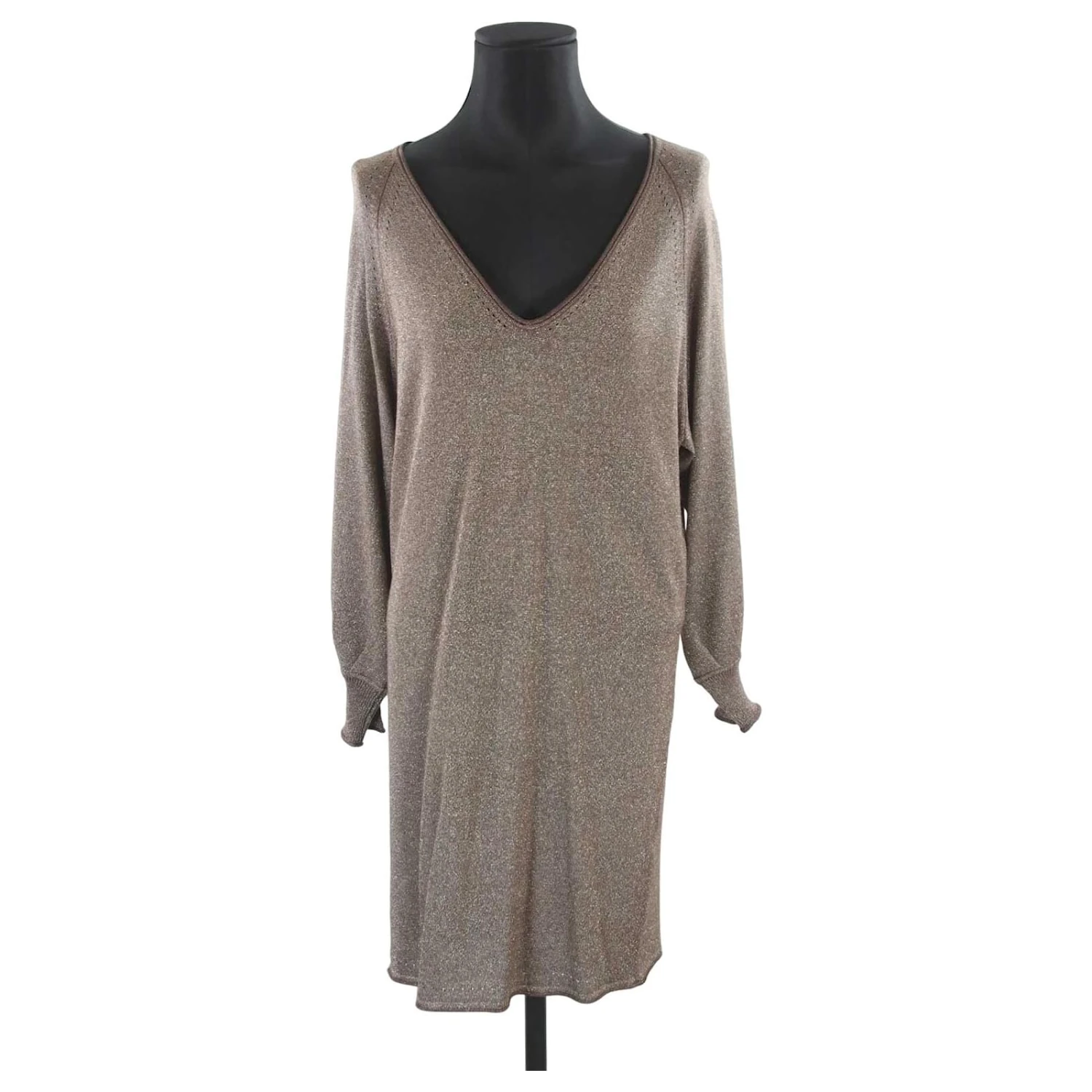Robe – Maje – Longueur : 96cm – Épaules : 38cm – Doré – Taille M – 100% Soie – Très Bon État – Référence 888099