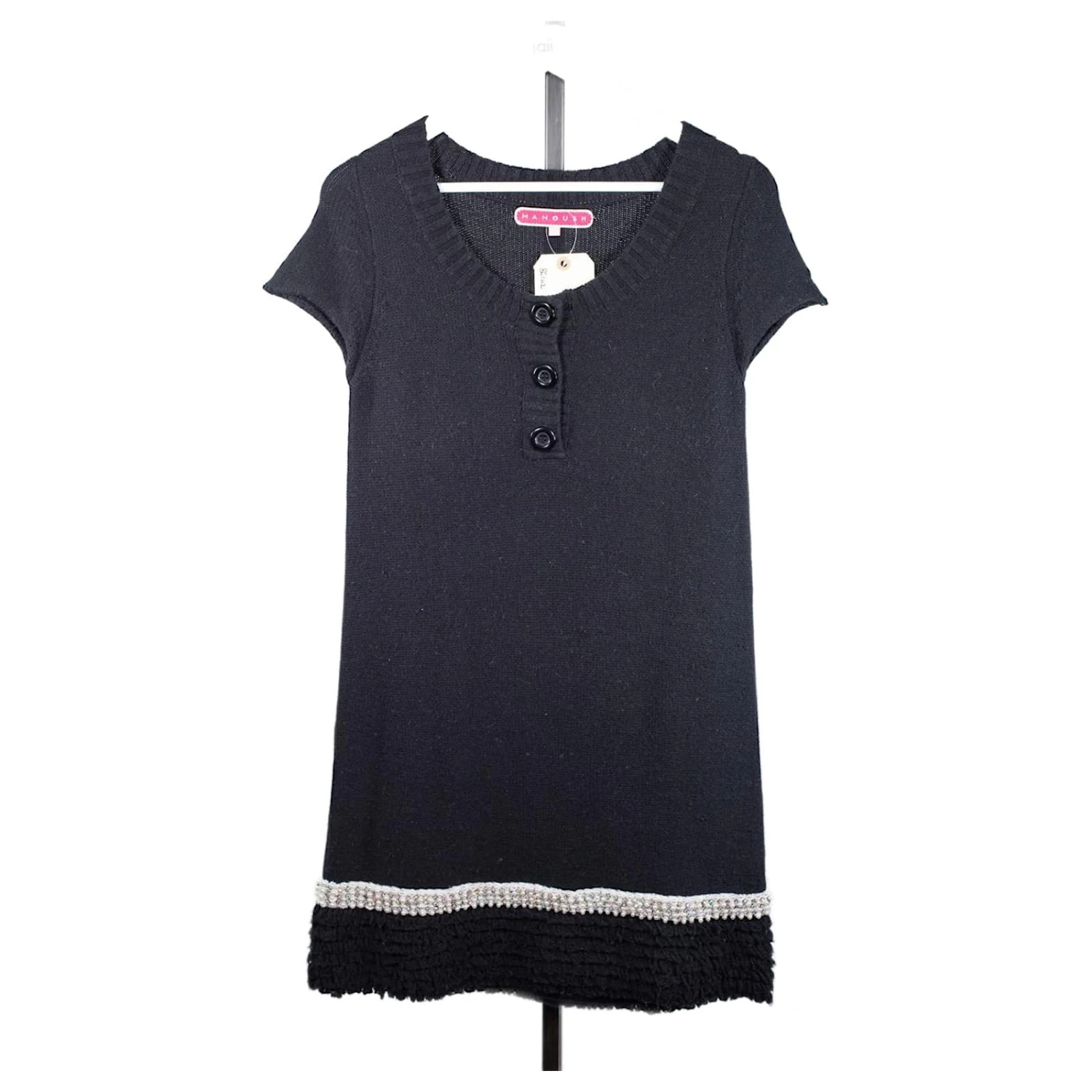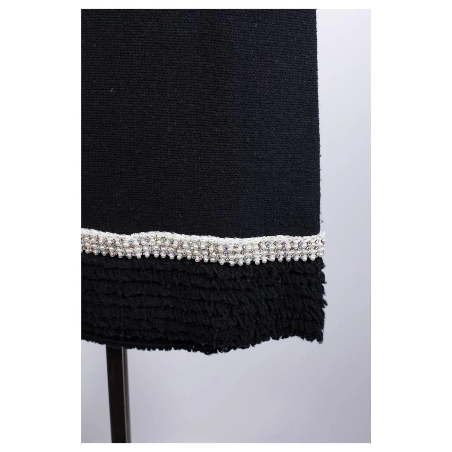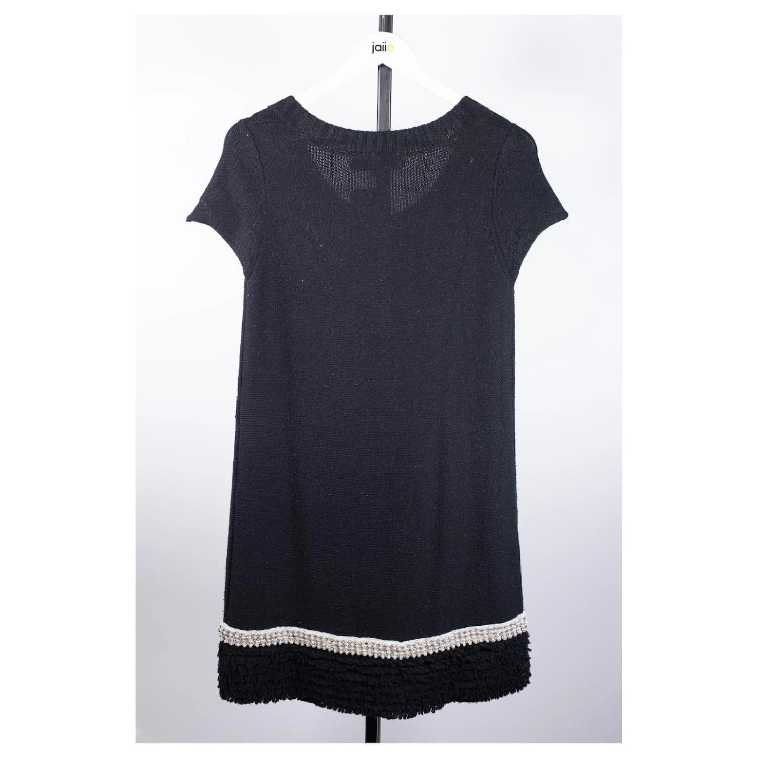Robe Courte En Maille Bas Ganse De Perles Et Strass Et Maille Frangee – Manoush – Taille 2 – 50% Laine 50% Coton – Noir – Tres Bon Etat – Ref 86102