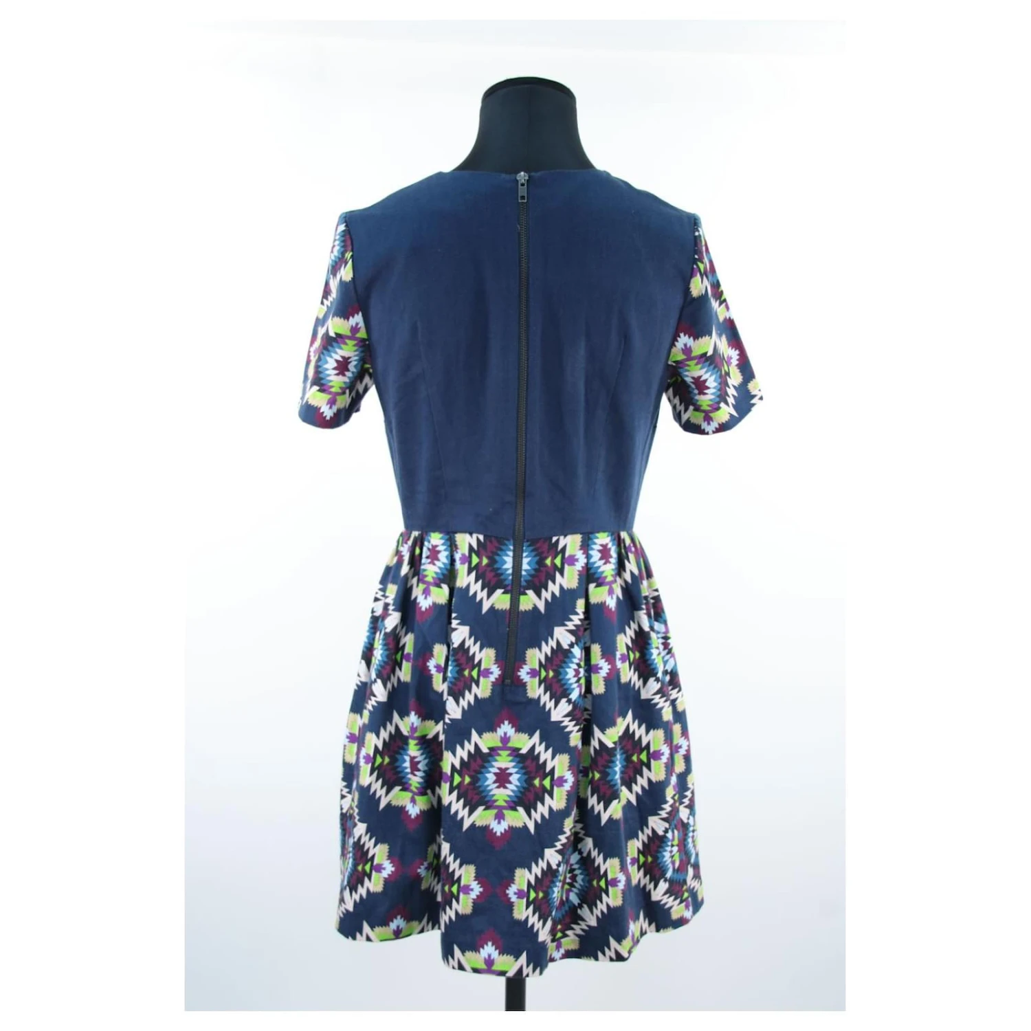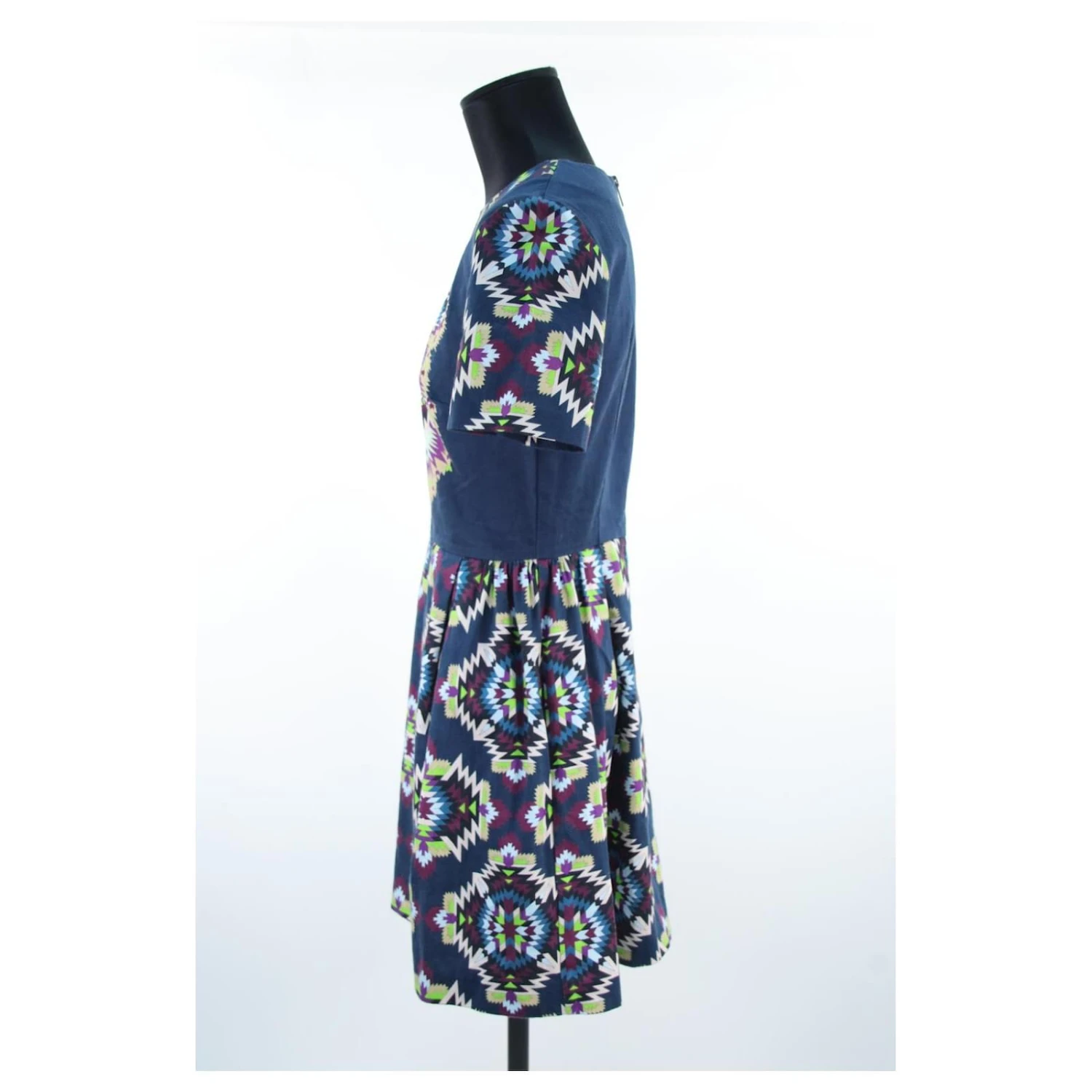 Robe courte – Manches courtes – Épaules 38cm – Aisselles 37cm – Longueur 85cm – Manoush – Bleu – Taille 36 – 100% Coton – Très Bon État – Référence 636067