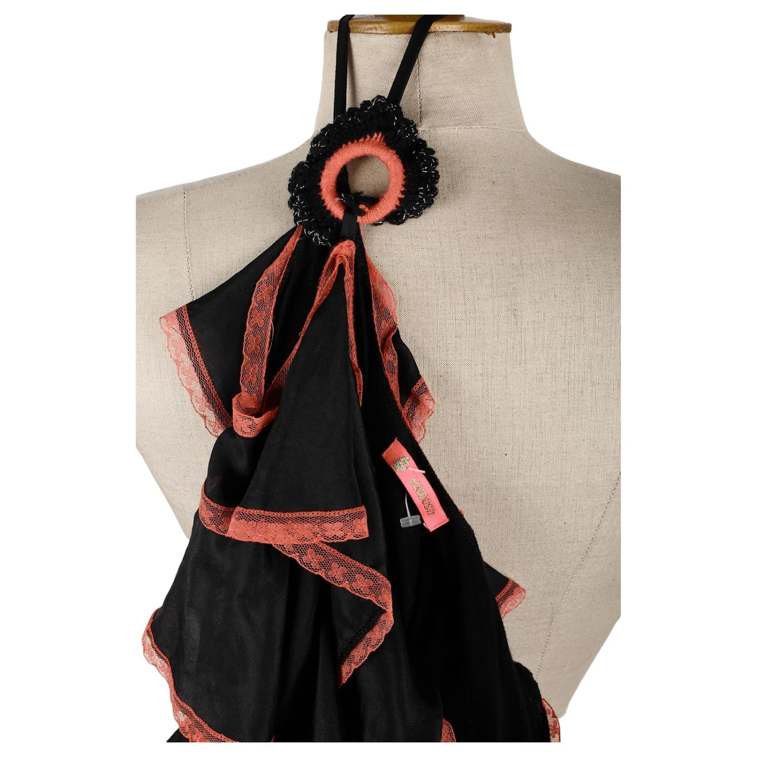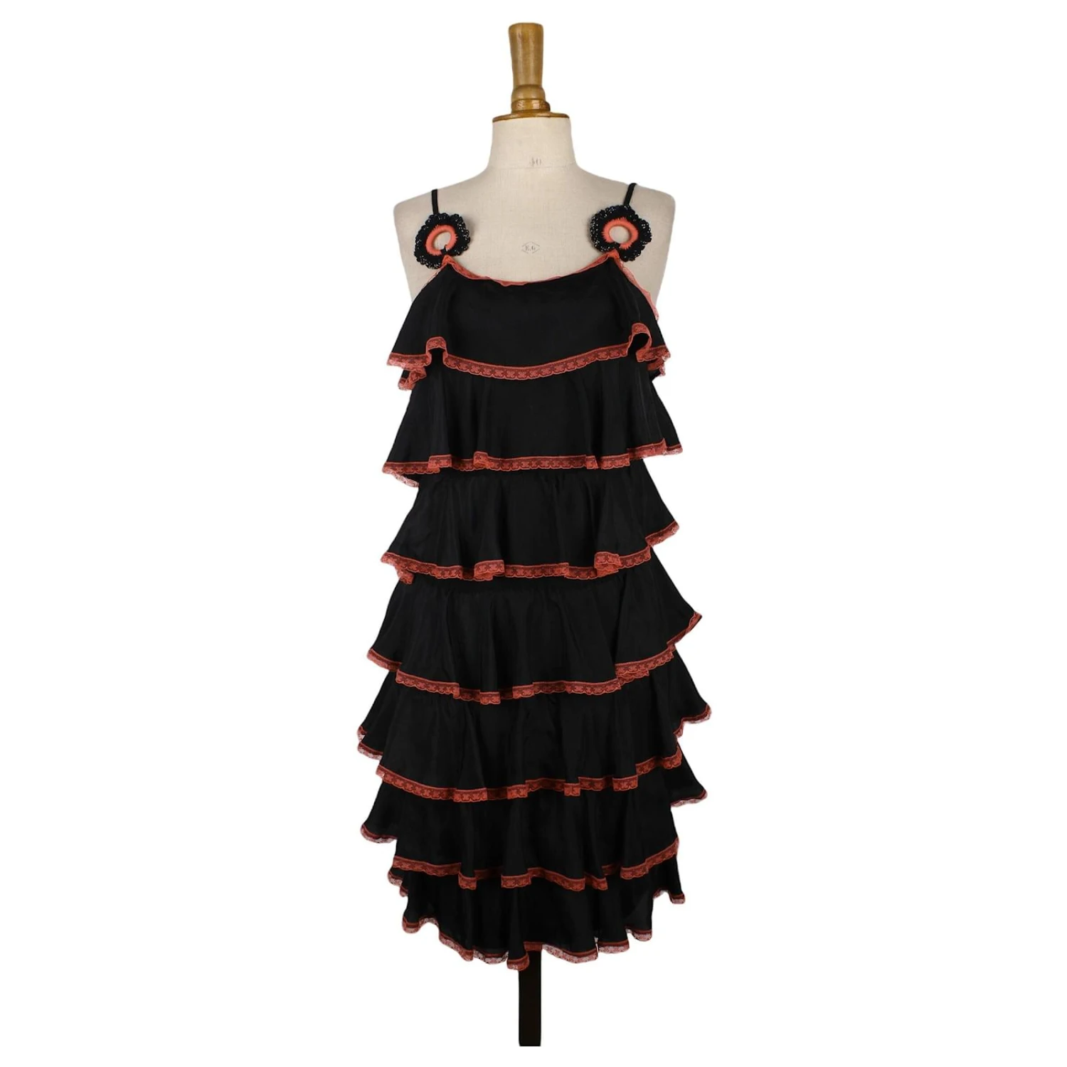 Robe – Manoush – Robe avec volants dentelle rose – Coupe ajustée – Noir – Taille M – 100% Soie – Très Bon État – Référence 1038002