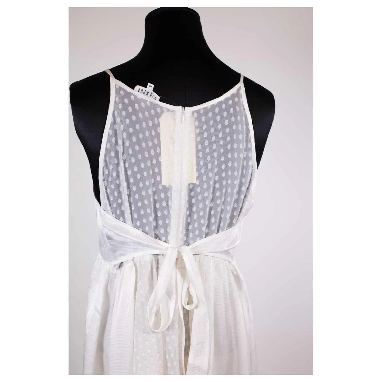 Robe Mi Longue A Bretelles Avec Volants En Bas Longueur 113Cm – Claudie Pierlot – Taille 40 – 100% Polyester – Blanc – Tres Bon Etat – Ref 197061