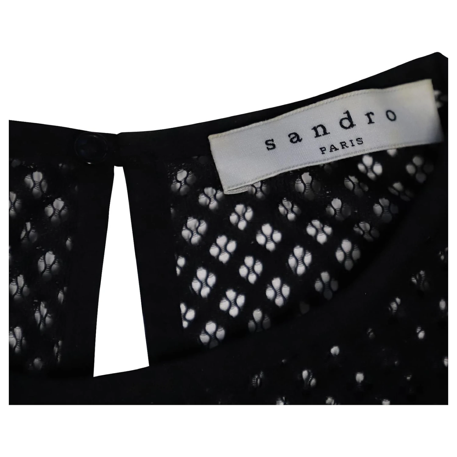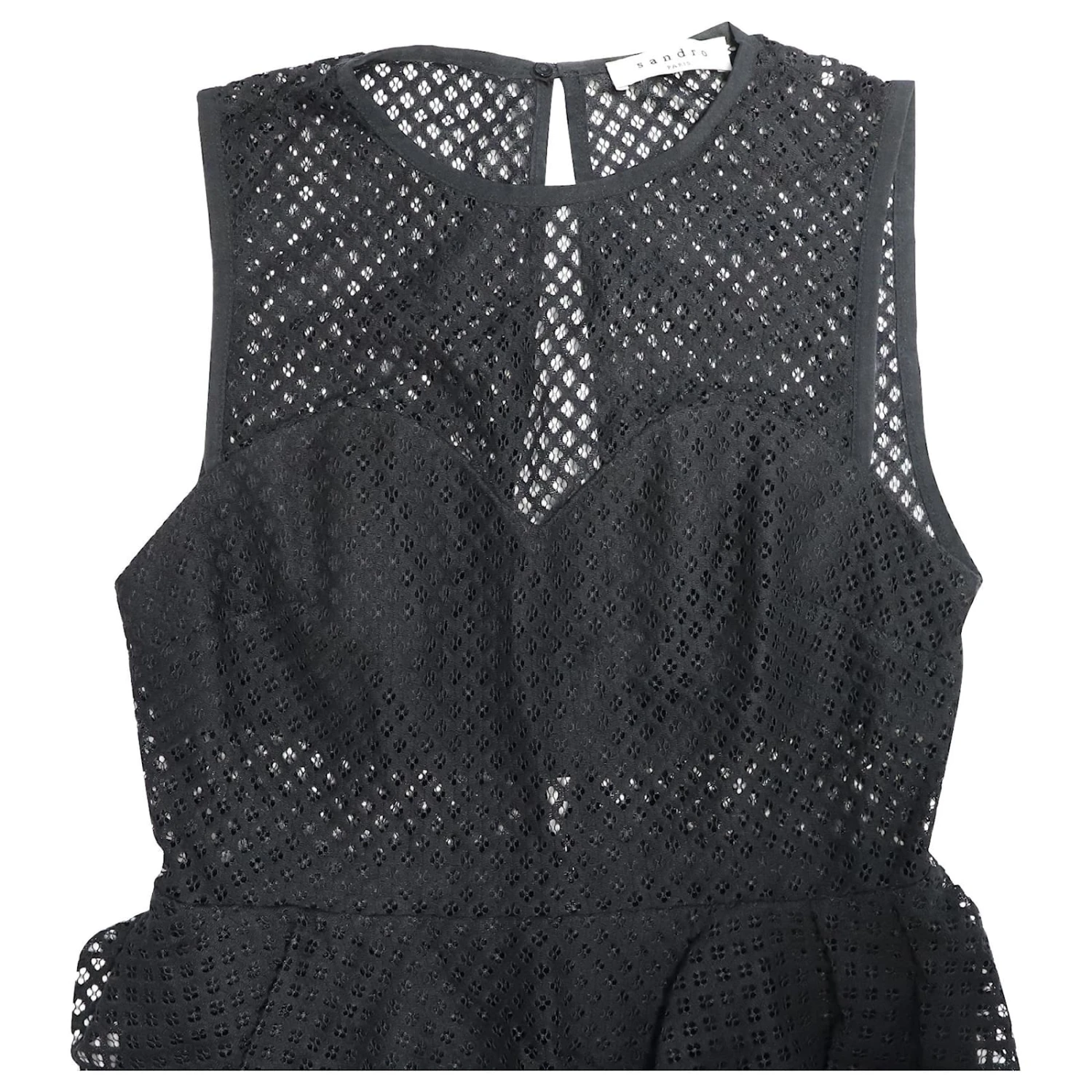 Robe mi-longue Sandro en maille ajourée sans manches en coton noir