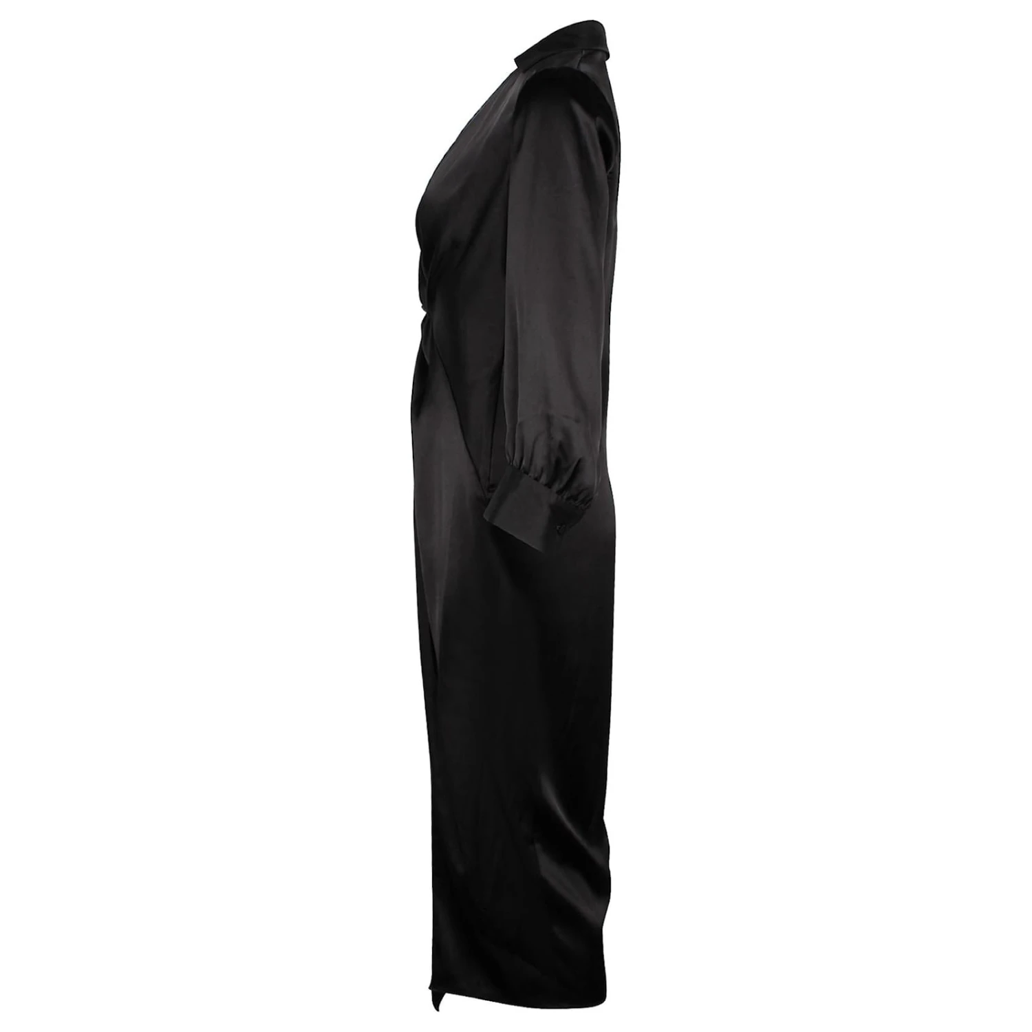 Robe mi-longue Theory à manches longues torsadées sur le devant en triacétate noir