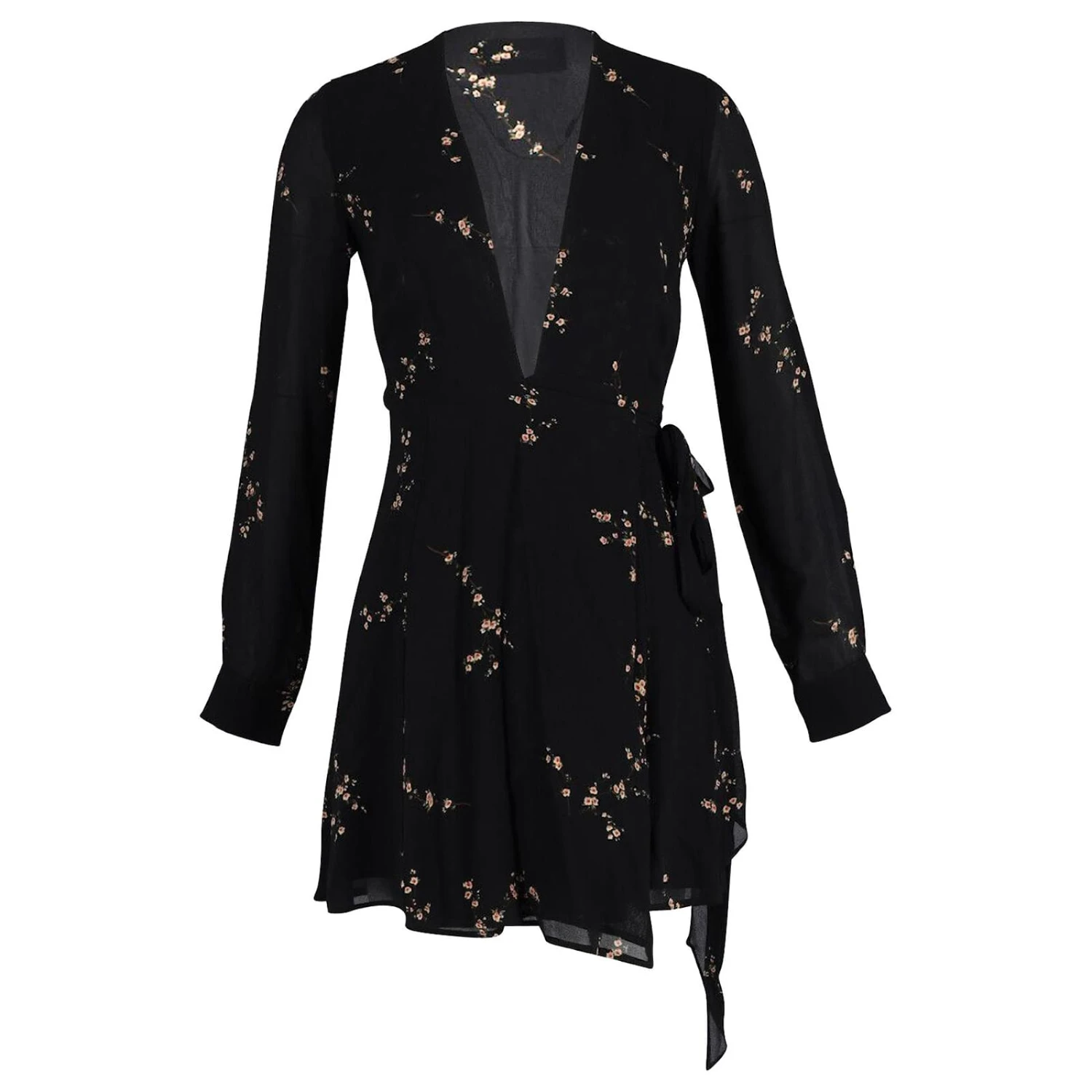 La robe Reformation est parfaite pour toutes les soirées d’été, dont cocktails et mariages. Il est fabriqué à partir de polyester brillant et a un devant enveloppant encadré par un joli imprimé floral.. Associez-lui des accessoires ornés de cristaux.