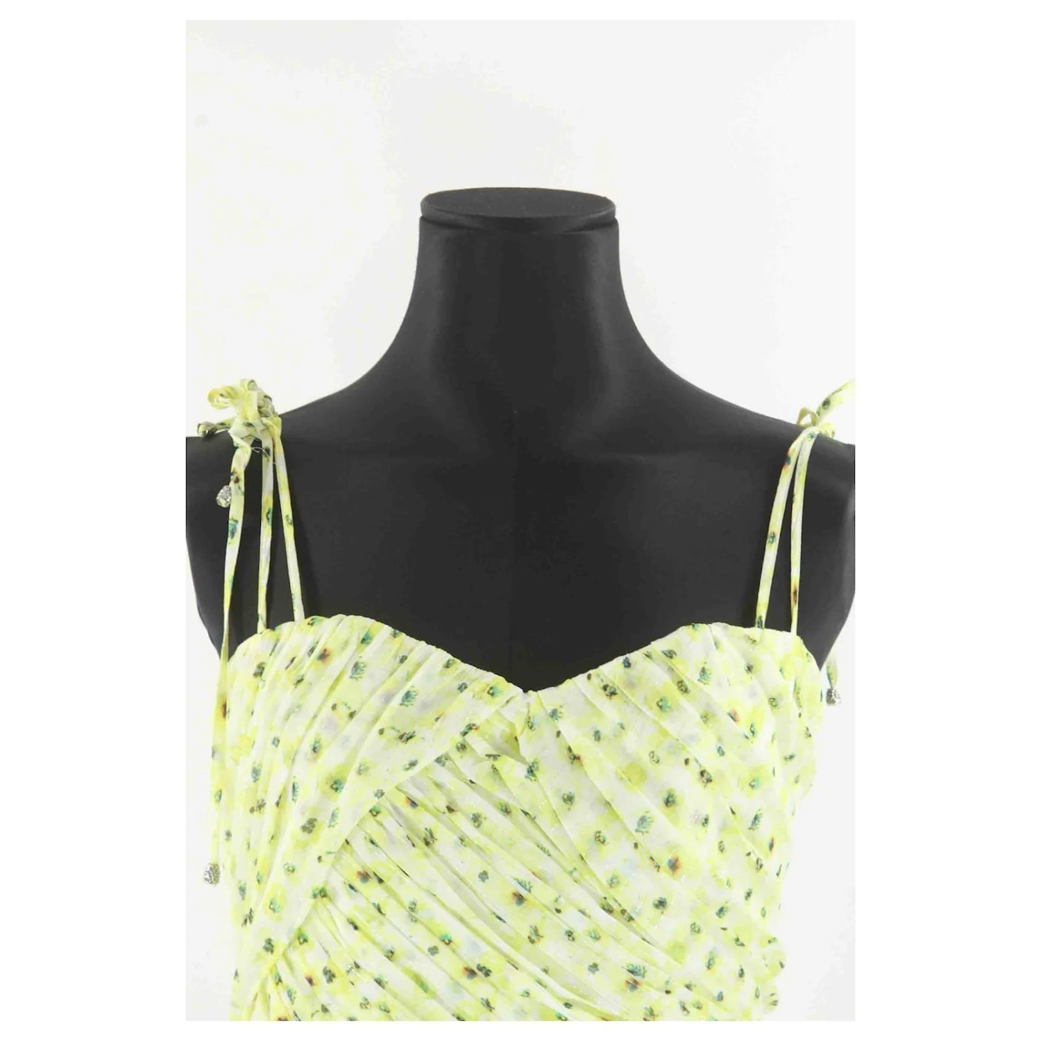 Robe – The Kooples – Longueur : 74cm – Largeur taille : 41cm – Imprimé floral – Jaune – Taille S – 100% Polyester – Très Bon État – Référence 564056