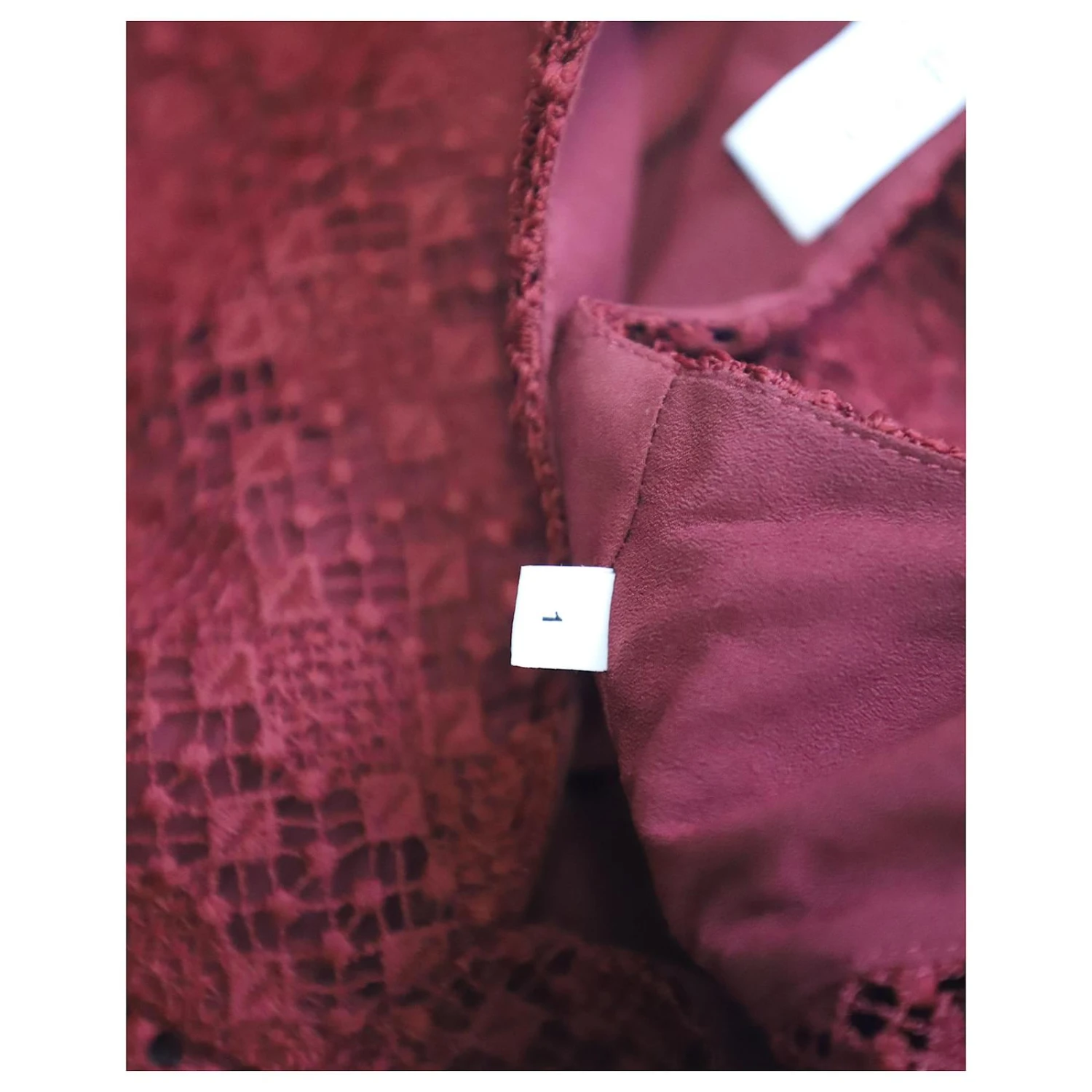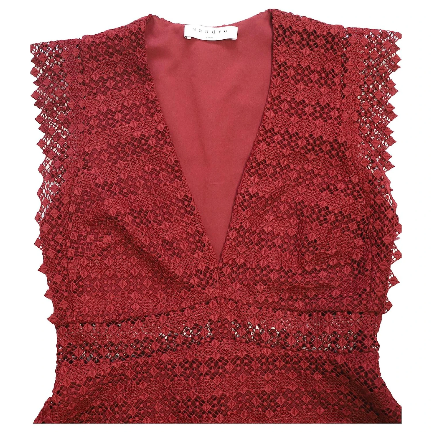 Sandro Mini robe sans manches en dentelle à col en V en polyester bordeaux