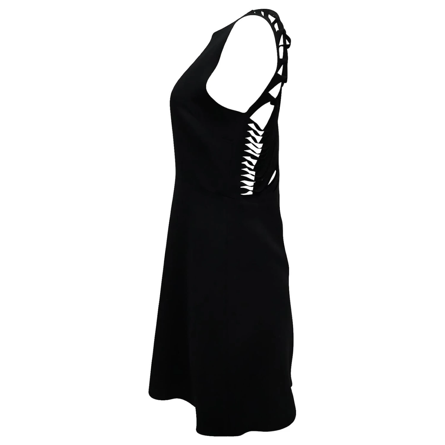 La mini robe Sandro Paris découpée dans le dos arbore un tissu en polyester noir avec un style sans manches. Un détail découpé unique dans le dos et un design minimaliste rendent cette robe parfaite pour les fêtes ou comme pièce de conditionnement sophistiquée dans votre garde-robe.