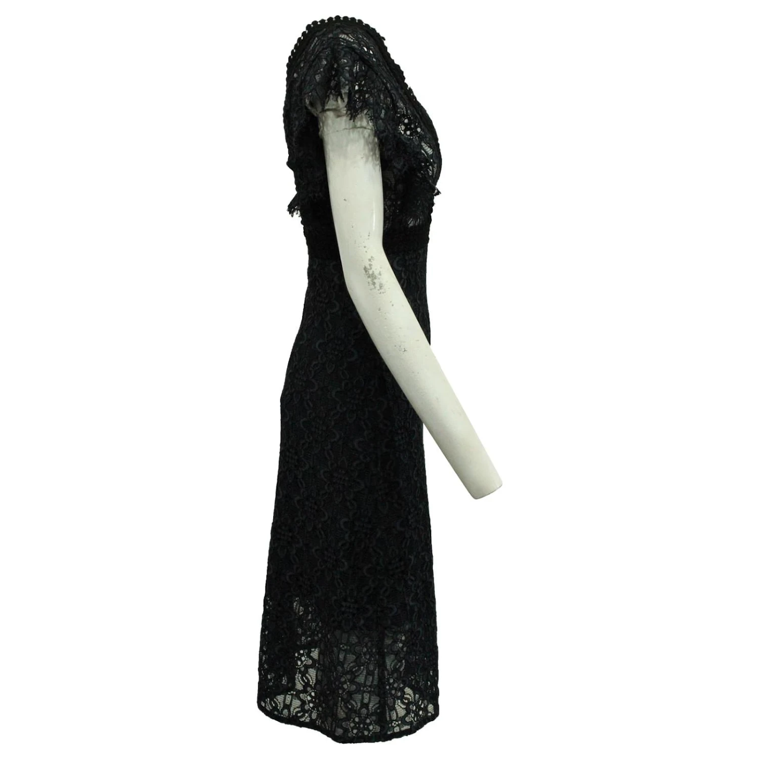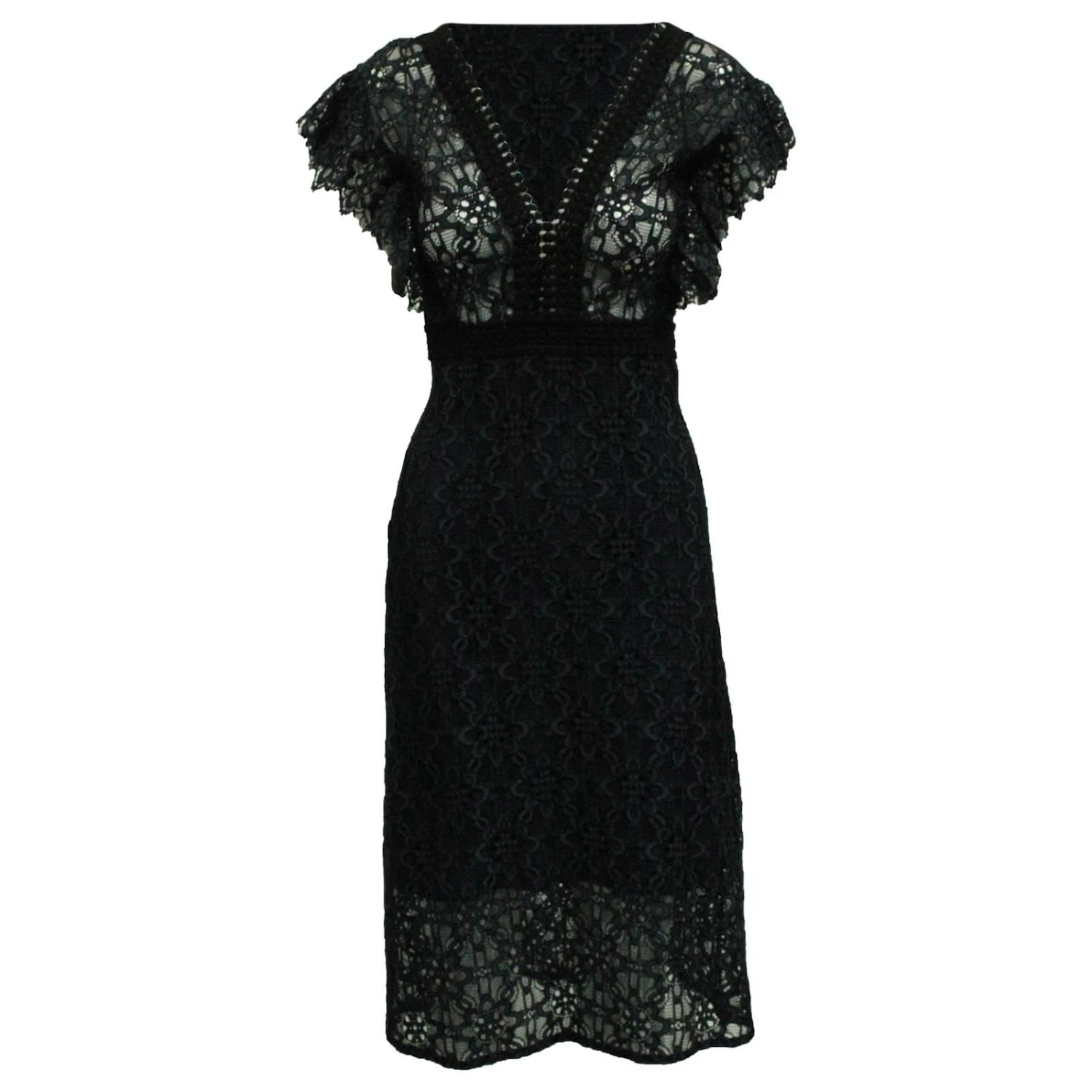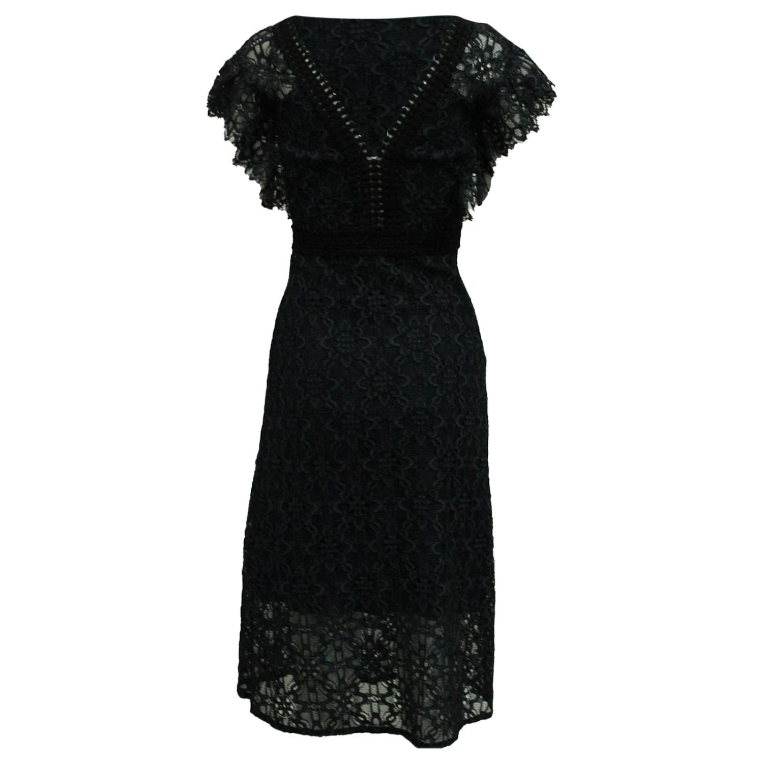 Soyez prête pour la prochaine fête dans cette robe de Sandro Paris qui a été habilement confectionnée dans une silhouette élégante. L’extérieur en dentelle noire est stylisé avec un col en V et un détail intérieur bleu marine. Complétez la robe sans manches en l’accessoirisant avec un minimum de bijoux.