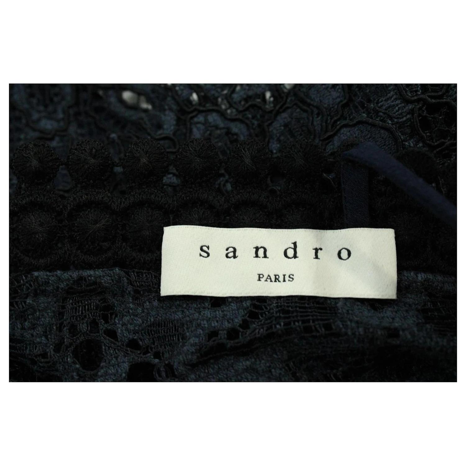 Sandro Paris Robe midi col V en dentelle Emeline en coton bleu marine