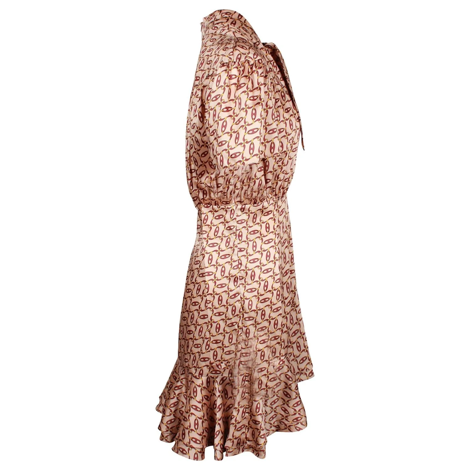 La Robe Imprimée Ourlet Asymétrique Sandro Paris en Polyester Beige est une mini robe à manches courtes et un ourlet asymétrique. Cette finition brillante est parfaite pour le soir ou la journée.