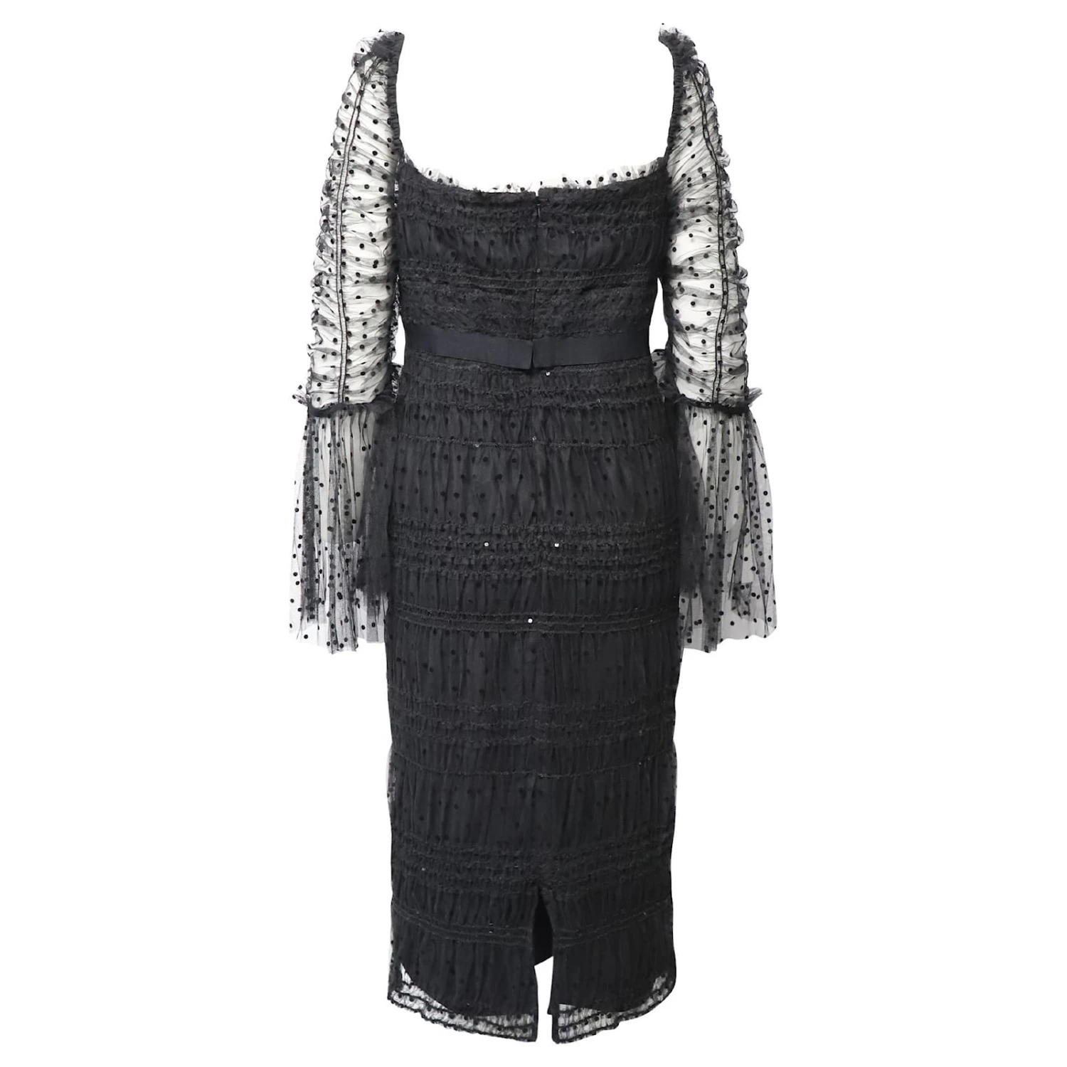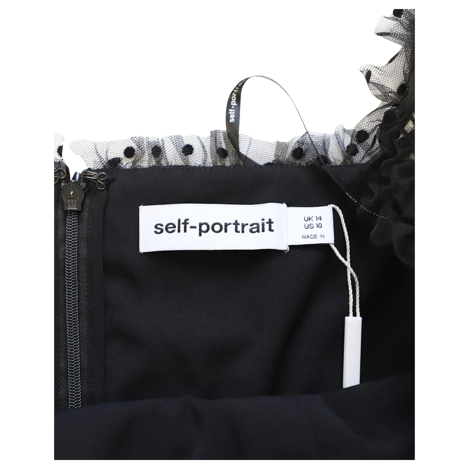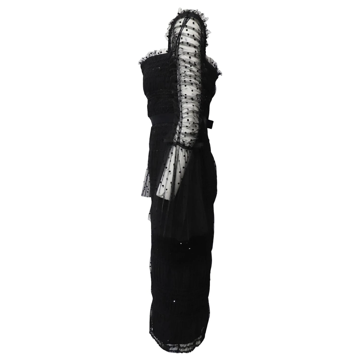 Cette robe noire signée Self-Portrait est ornée d’une multitude de sequins ton sur ton qui reflètent si joliment la lumière, ce qui en fait un incontournable pour les événements que vous allez danser ou photographier. Réalisé en tulle floqué à pois, il est smocké pour rehausser la coupe ajustée et possède une ceinture en gros-grain cintrant la taille et des manches froncées qui tombent sur des poignets cloches aérés. L’encolure carrée est parfaite pour mettre en valeur un collier délicat.