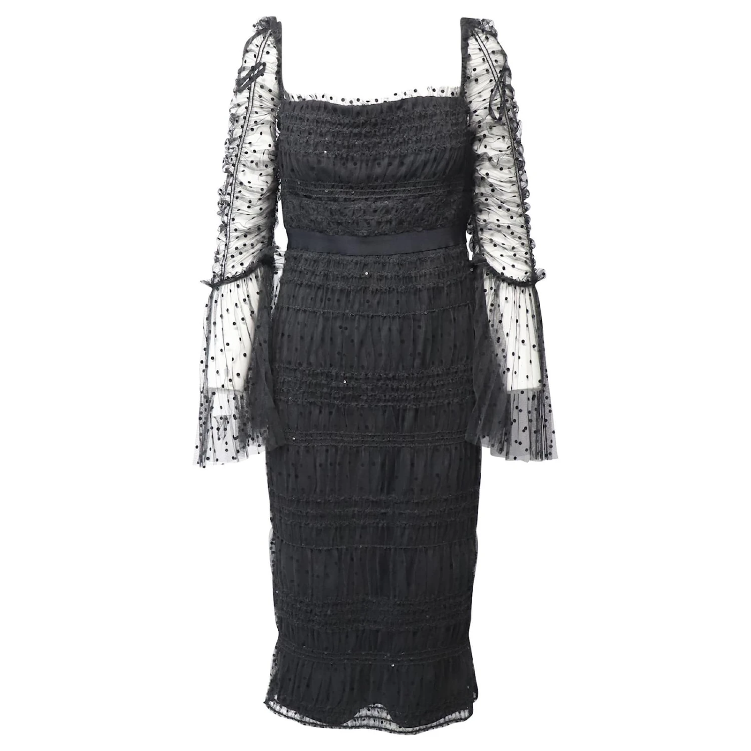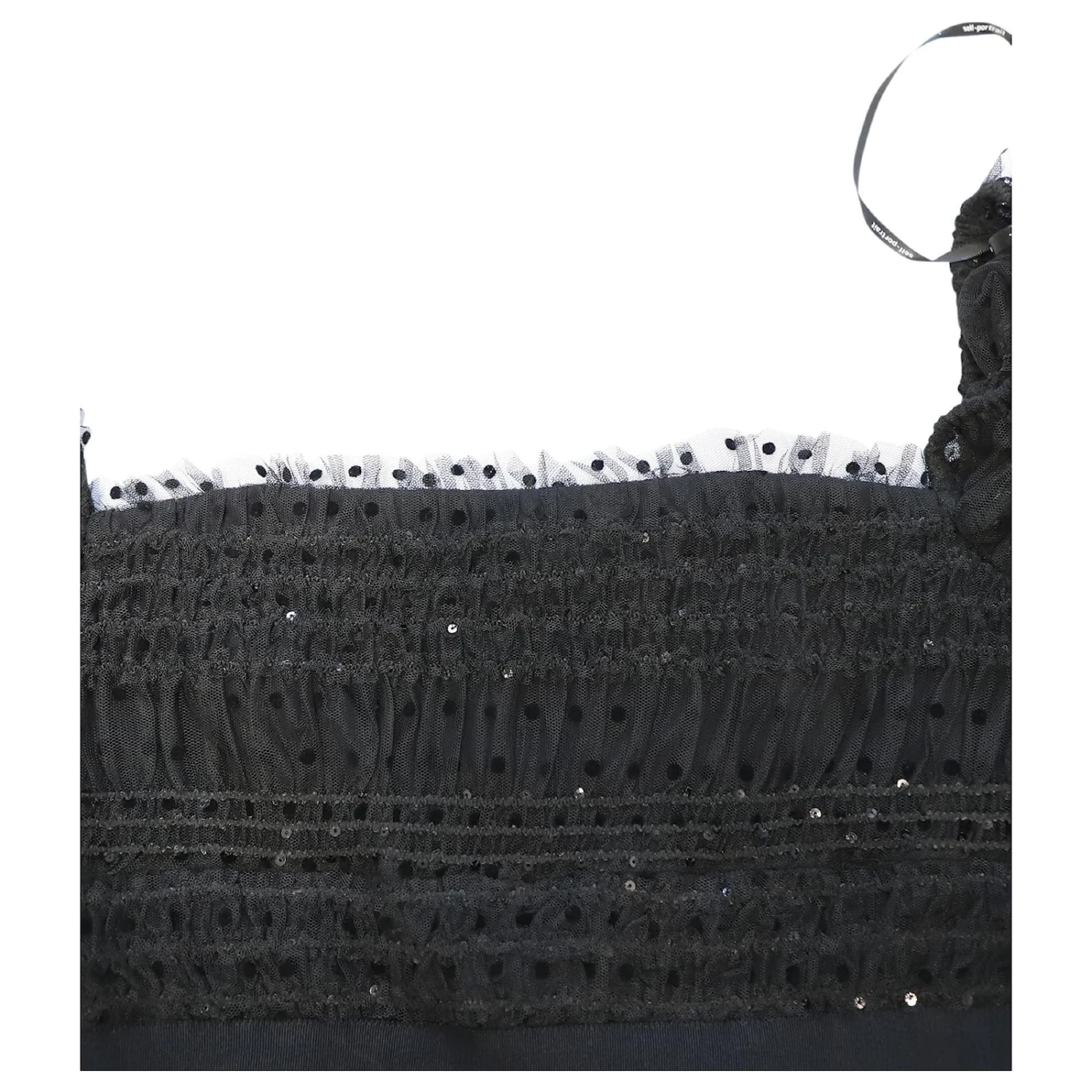Self Portrait Robe mi-longue froncée ornée de sequins en polyester noir