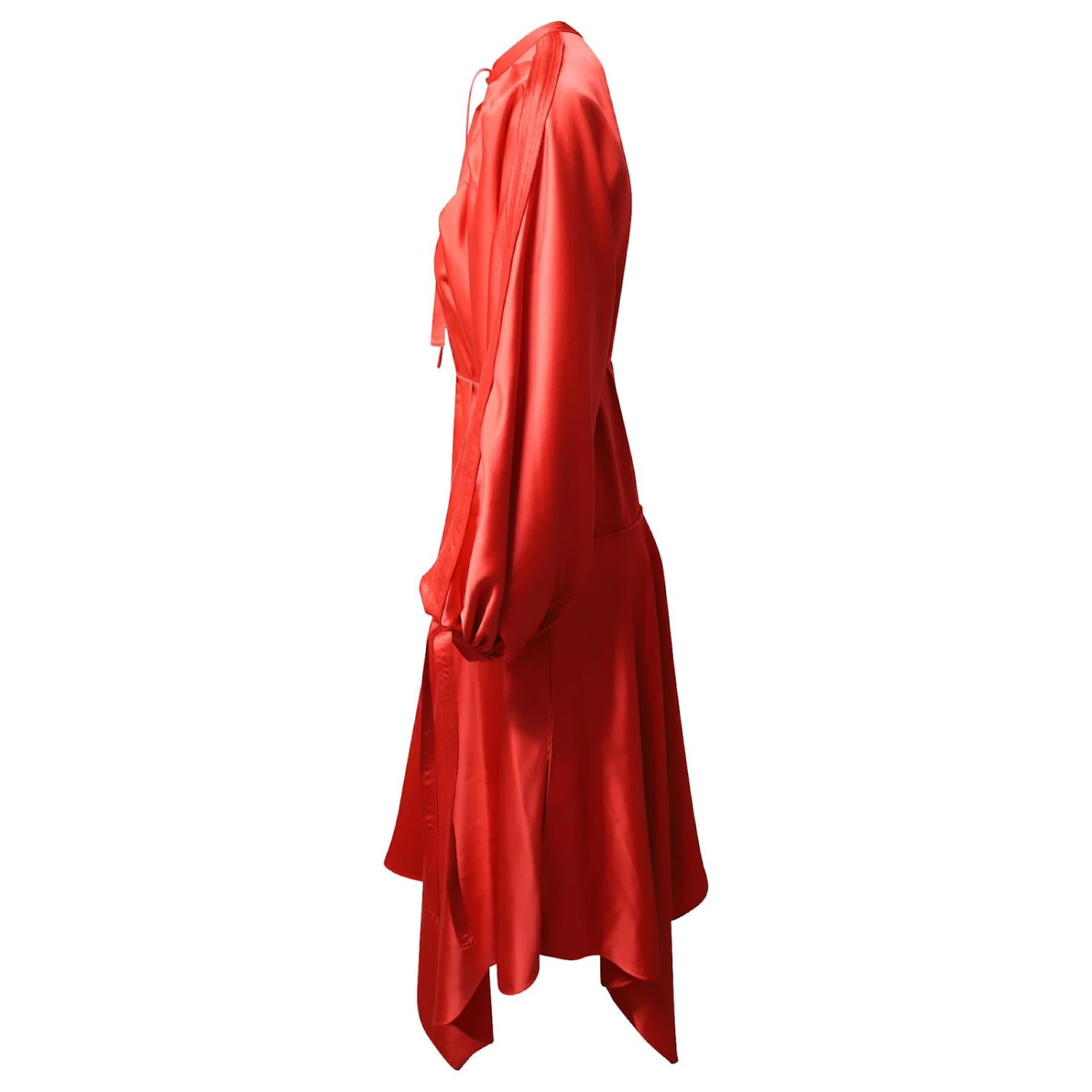 Self-Portrait Robe Asymétrique Péplum Trou de Serrure en Satin Rouge