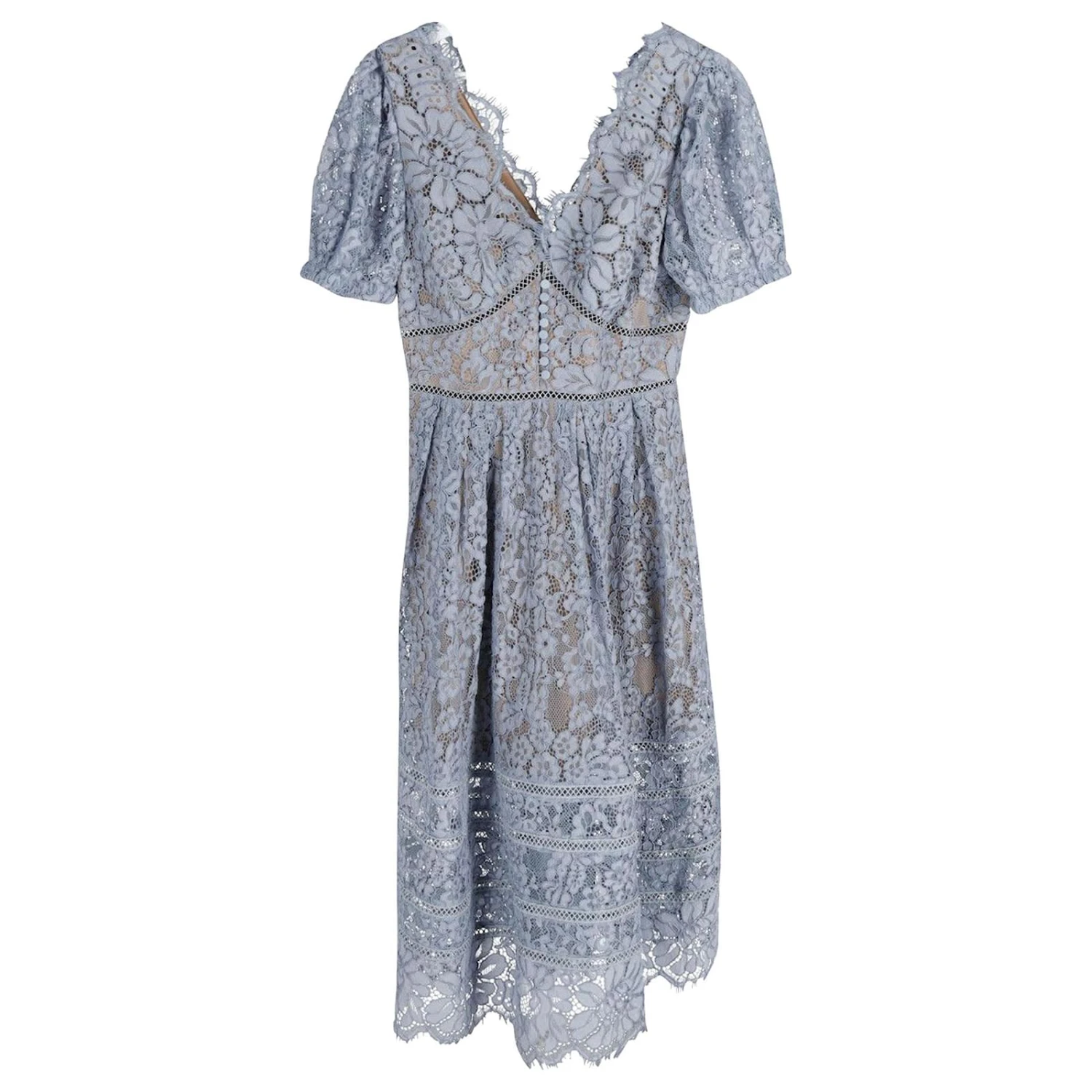 Self-Portrait Robe mi-longue en dentelle à manches courtes en coton bleu