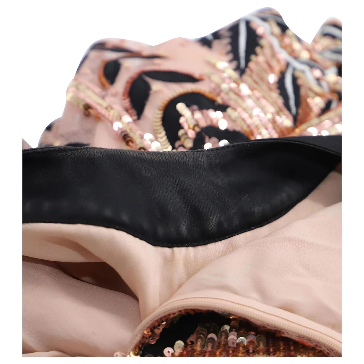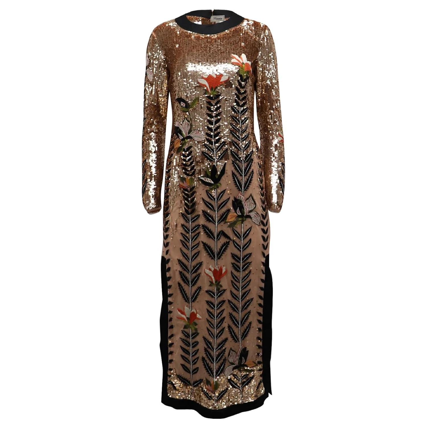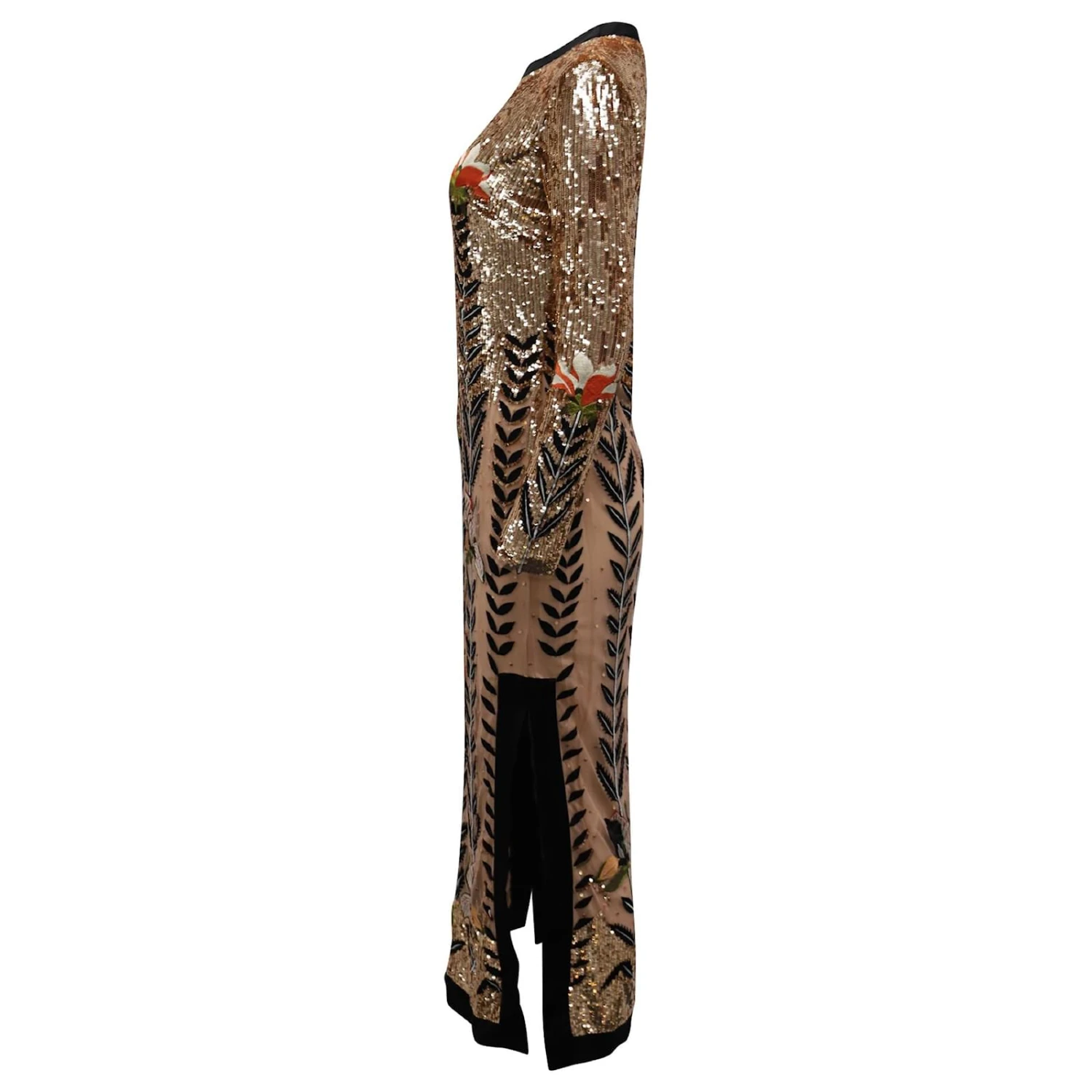 Vous allez adorer votre look lorsque vous enfilerez cette robe longue. C’est une conception de Temperley London, merveilleusement adapté dans une silhouette semi-ajustée et ajouté avec une encolure ras du cou, manches longues, broderie florale, et paillettes. Une paire de sandales à talons hauts et une pochette complèteront la robe à la perfection.