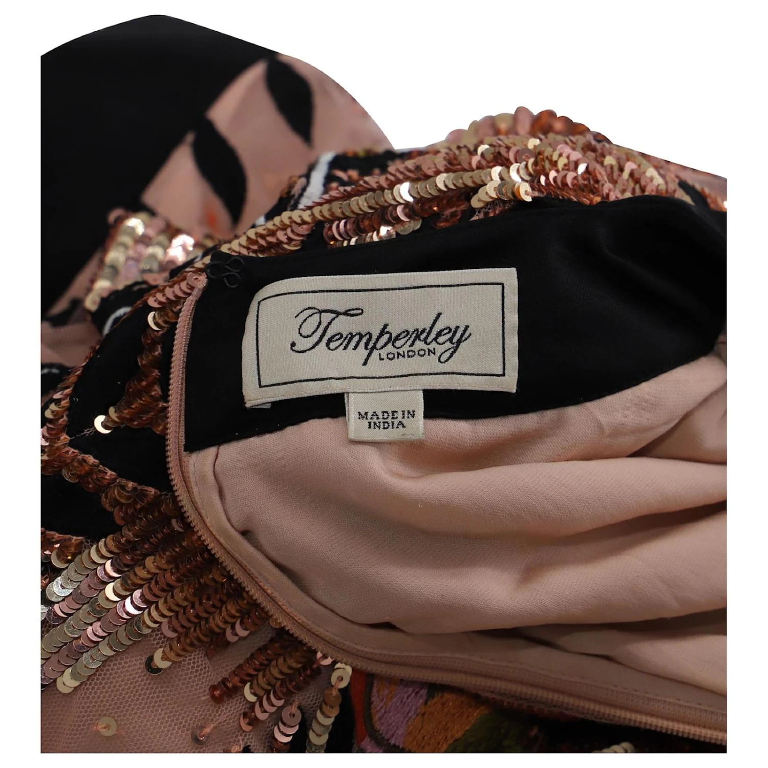 Temperley London – Robe longue Magnolia à sequins et manches longues en nylon pêche