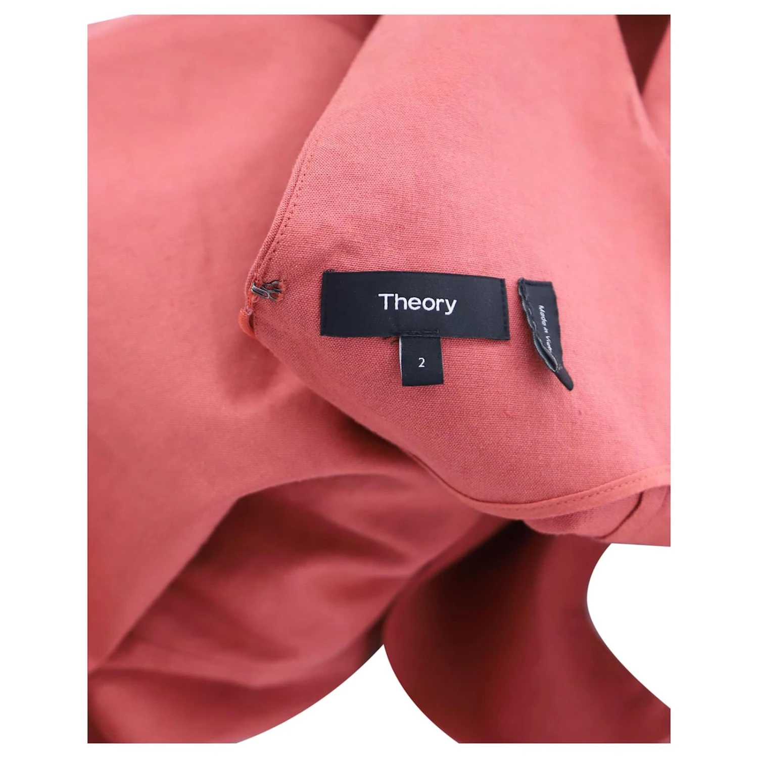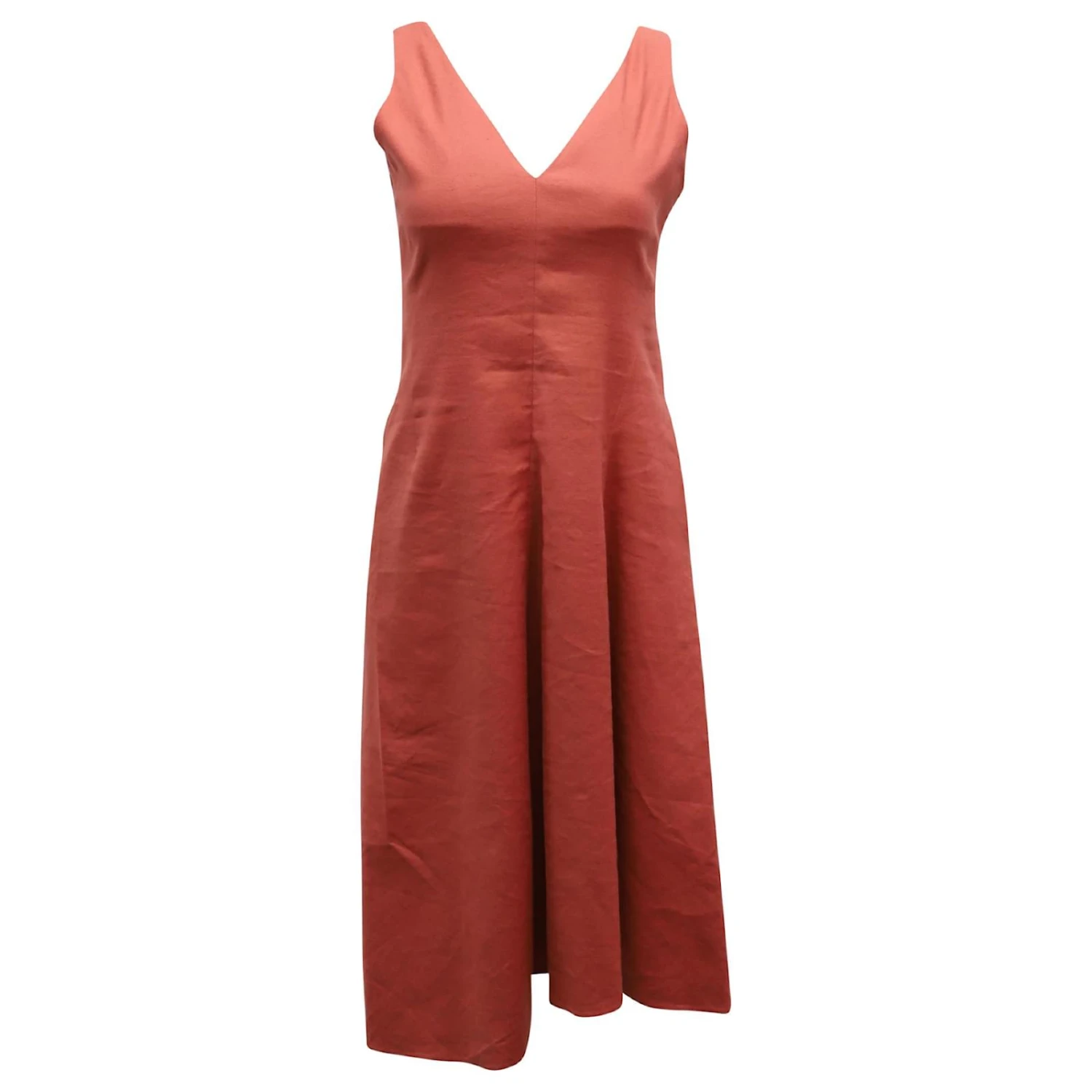 Theory Slip Robe Mi-Longue à Col en V en Lin Rouge Orange