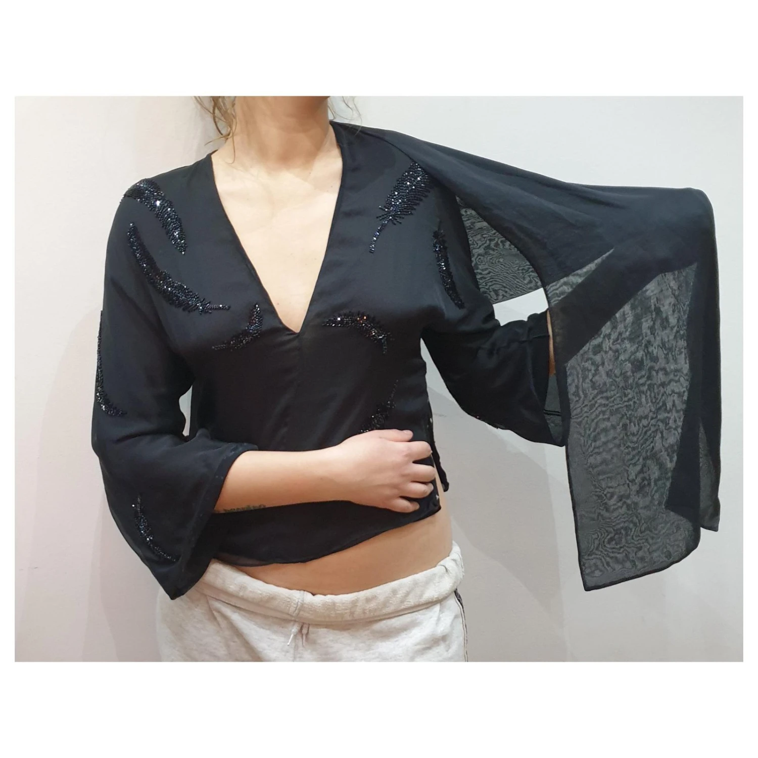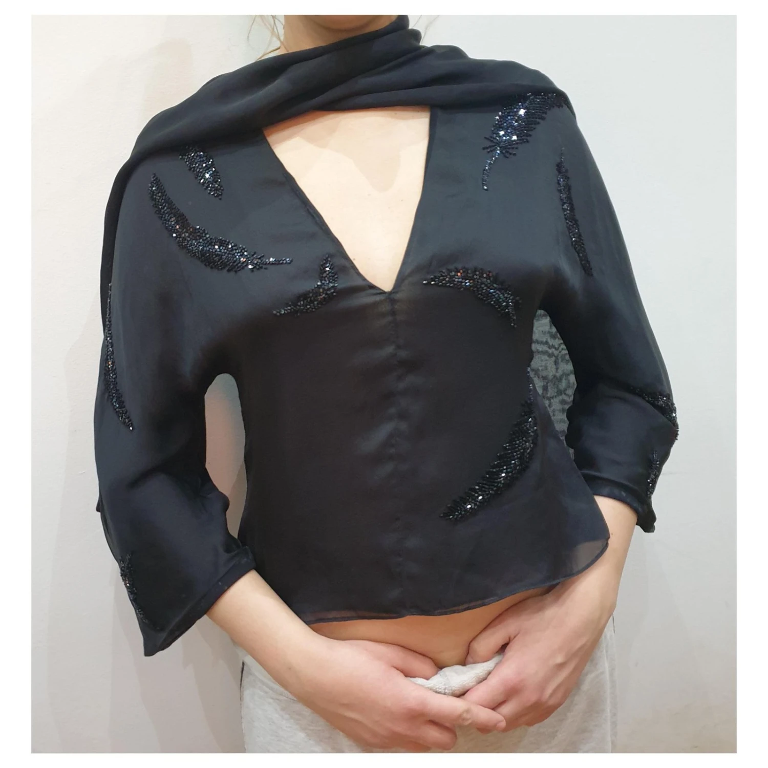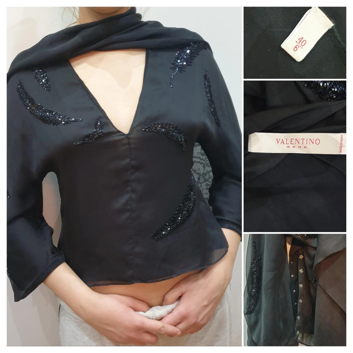 Chemise chemisier Roma Valentino Garavani en voile de soie et broderie de perles avec deuxième couche supplémentaire de tissu de doublure noir
