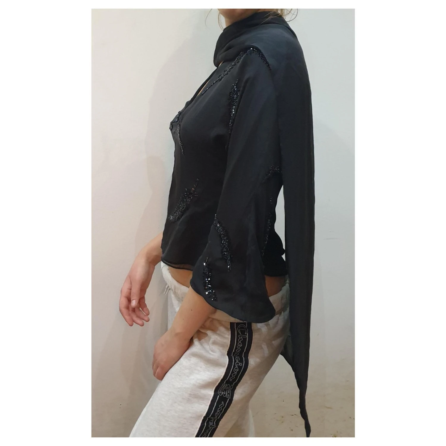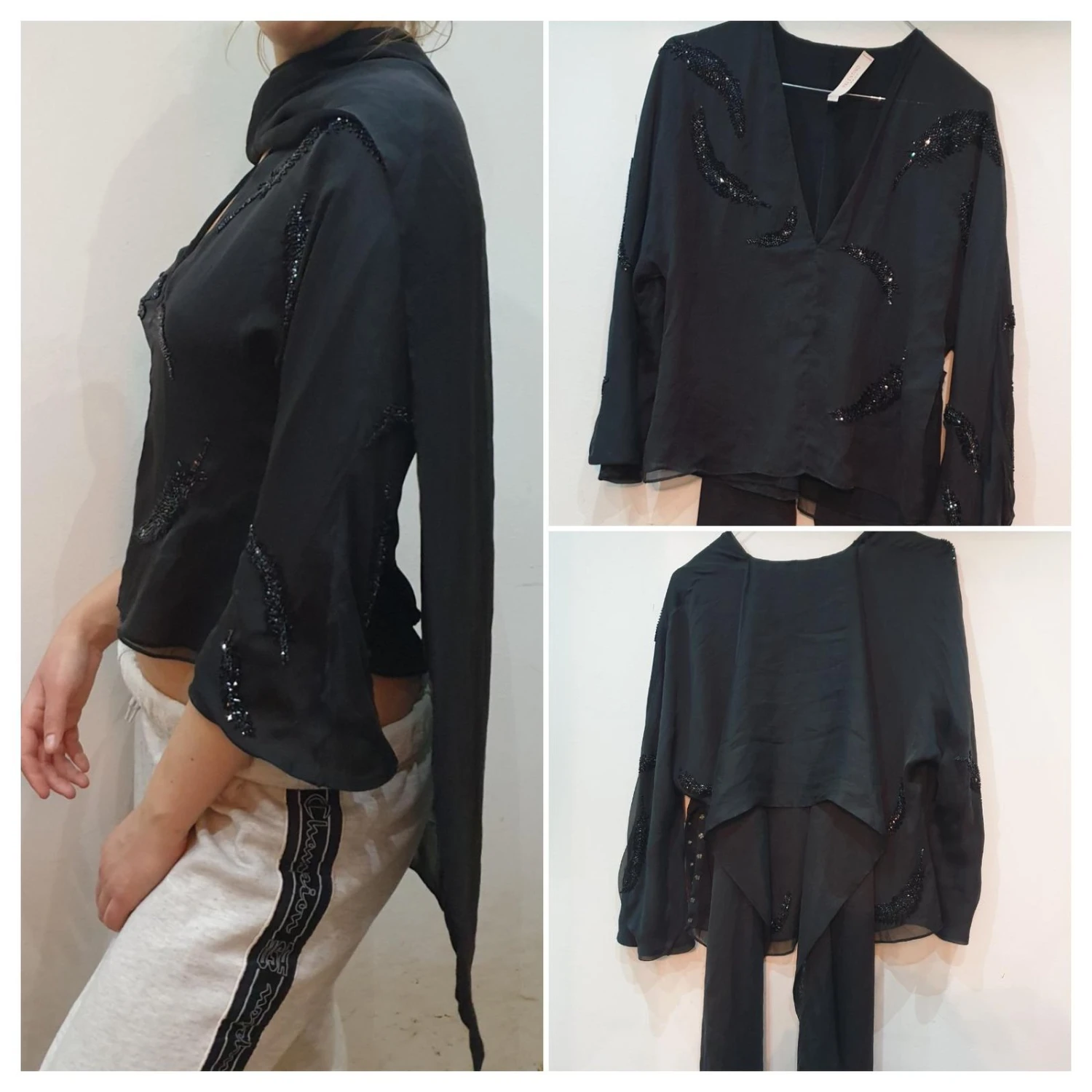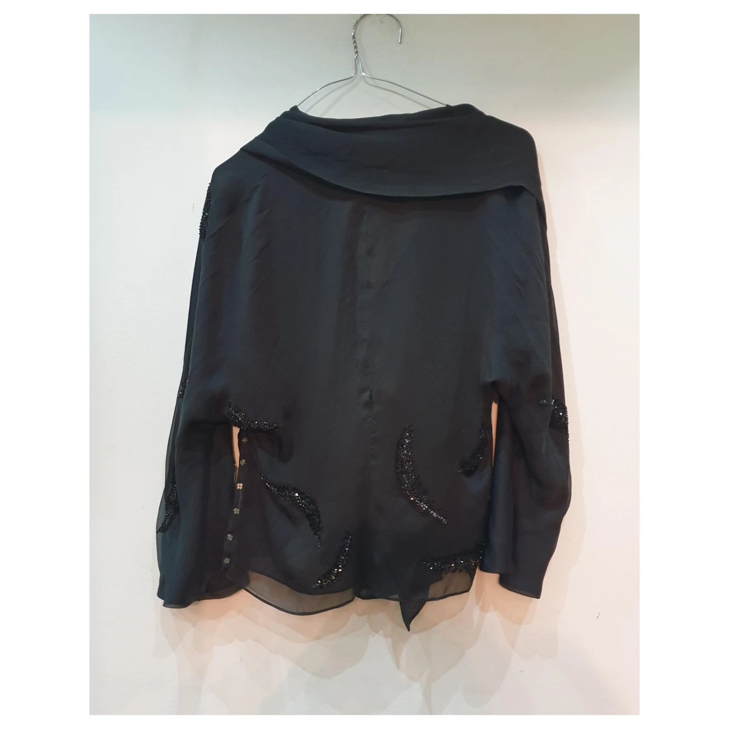 Chemise chemisier Roma Valentino Garavani en voile de soie et broderie de perles avec deuxième couche supplémentaire de tissu de doublure noir