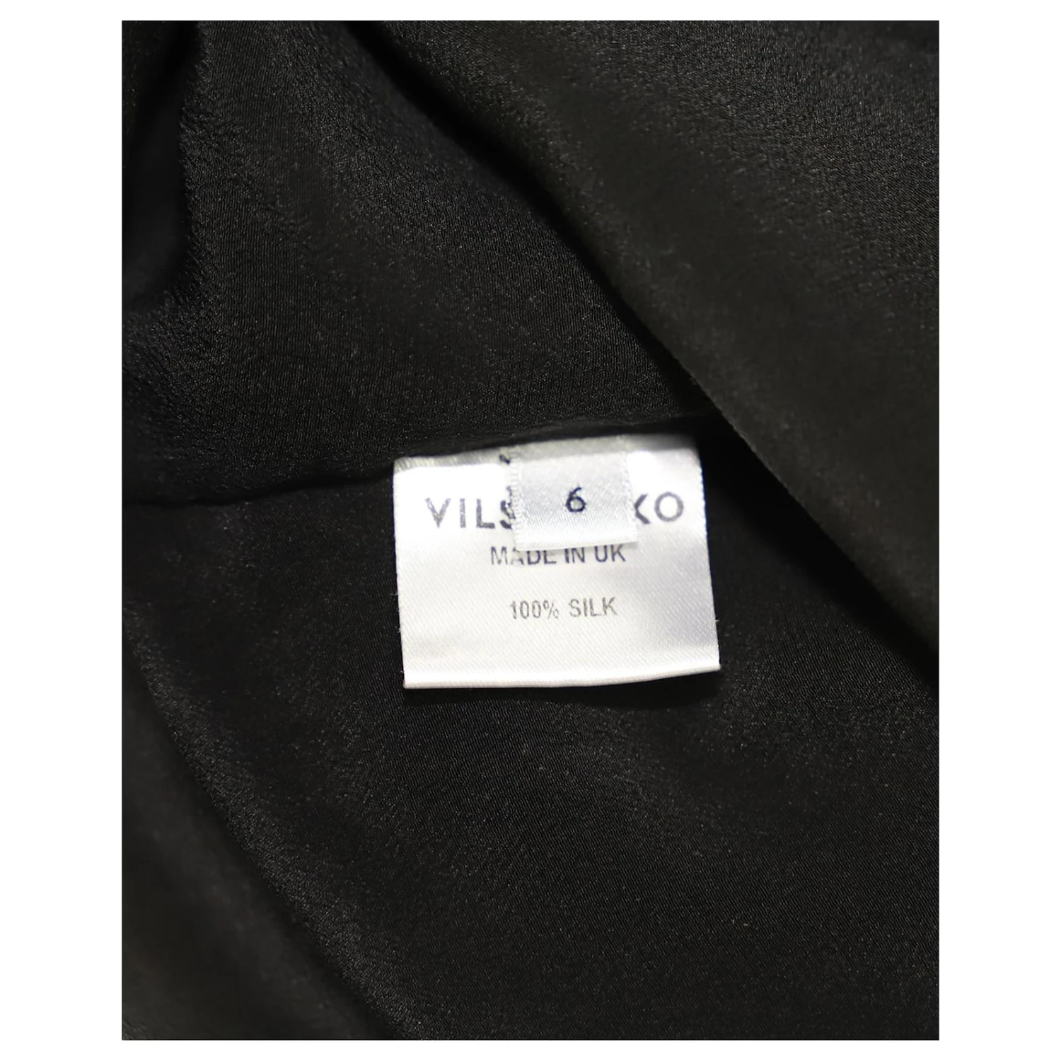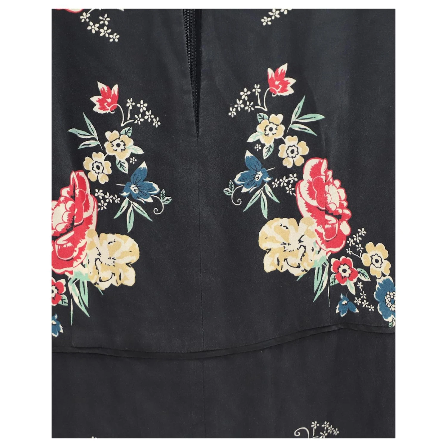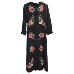 Cette robe sophistiquée de la maison Vilshenko vous fera sûrement ressembler à une professionnelle. Coupé dans de la soie, il présente une teinte noire classique avec des imprimés floraux contrastés. La création a des manches longues et un décolleté avec une fermeture boutonnée qui ajoutent à l’élégance de la robe.