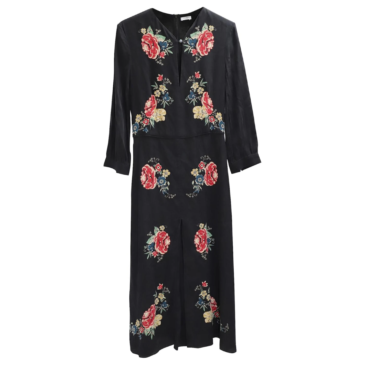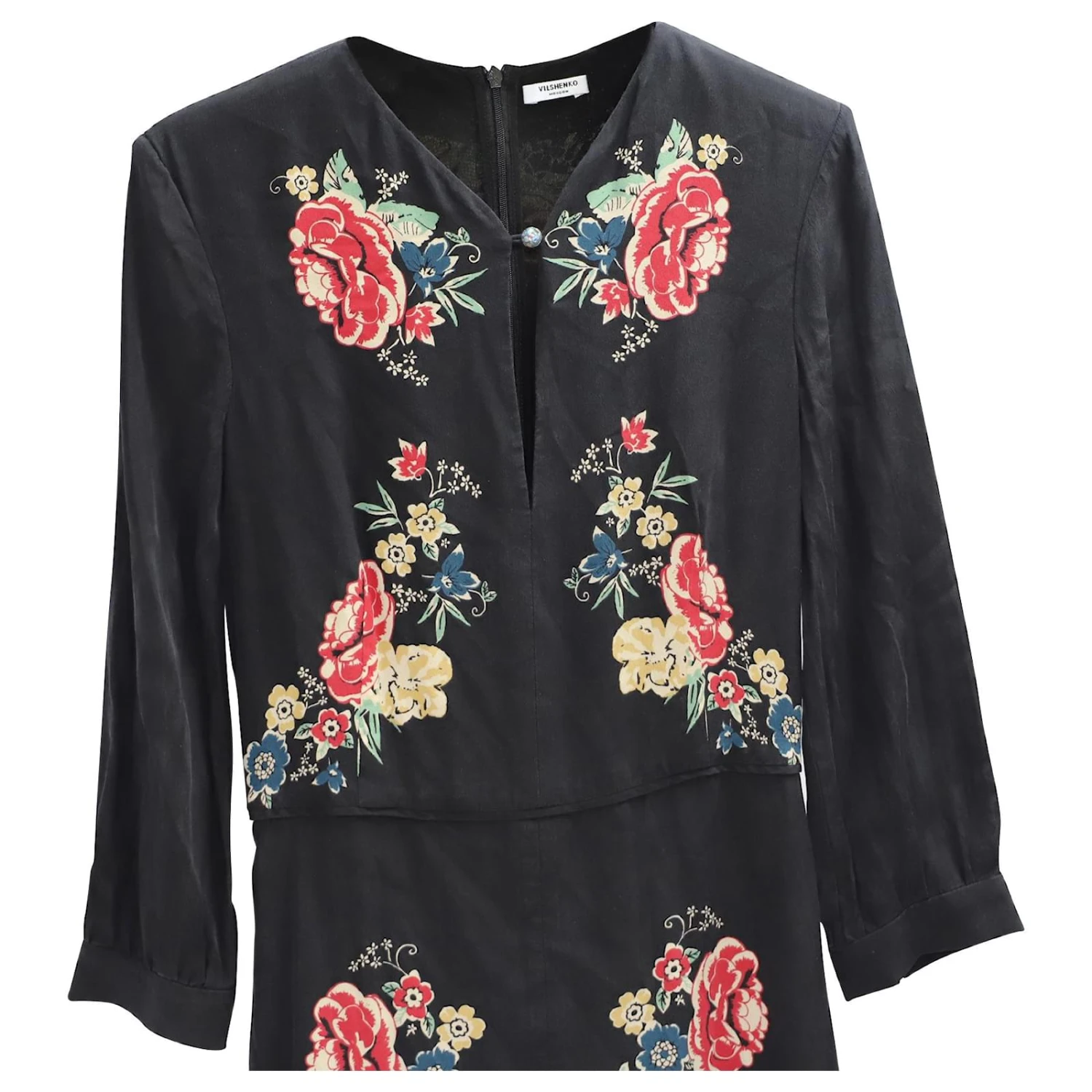 Vilshenko Robe Florale à Manches Longues en Soie Noire